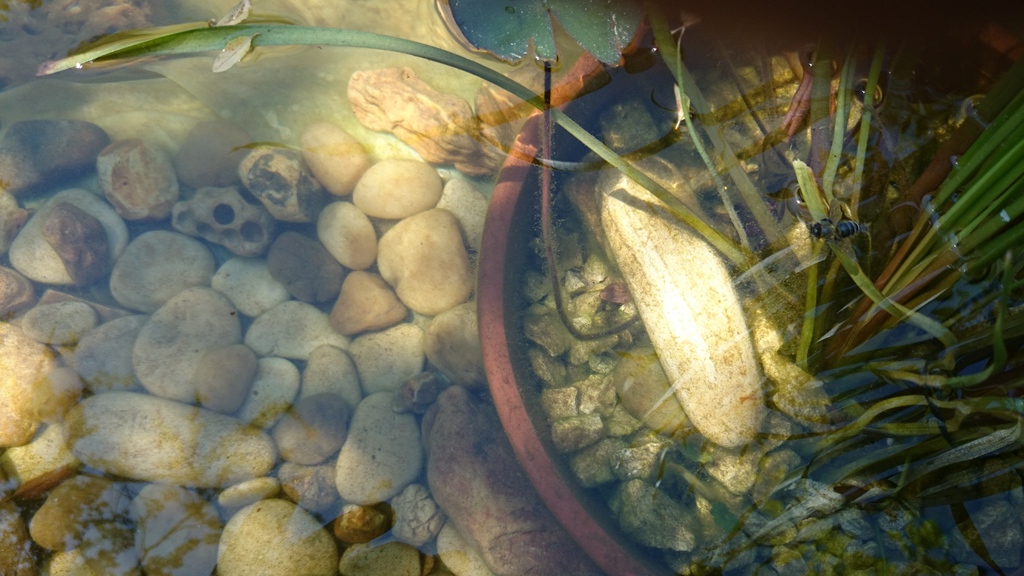 Здравейте, от няколко дена 3-4 не повече... Дъното на езерцето и стените покафеняха... Забелязах, че са се образувало нещо като кафяв мъх или водорасли по камъните, саксиите и дори по стеблата на самите водорасли... Иначе водата си ми е кристално бистра...