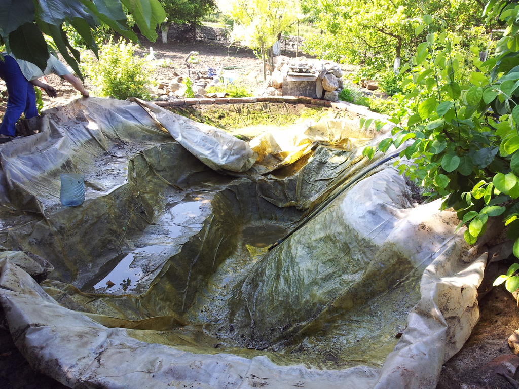 малко UP от тази година. Студентския живот се отразява на езерото. Лилиите не са пресаждани от две години сигурно. Майка ми има високи критерии за чистотата и явно баща ми при някое от чистенията доста се е озорил с метлата и е скъсал найлона  :-D и използвахме момента, че съм на разположение, и сменихме найлона .. и малко изкопахме  :-[ . Ето малко снимки да наваксам  *DRINK* .