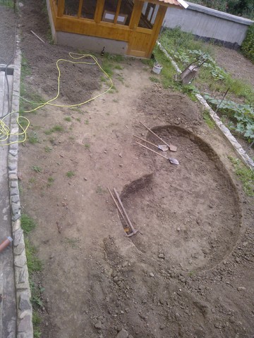 Като копаехме нашето езеро, мокрехме с мъркуча, защото не се забиваше лопатата.