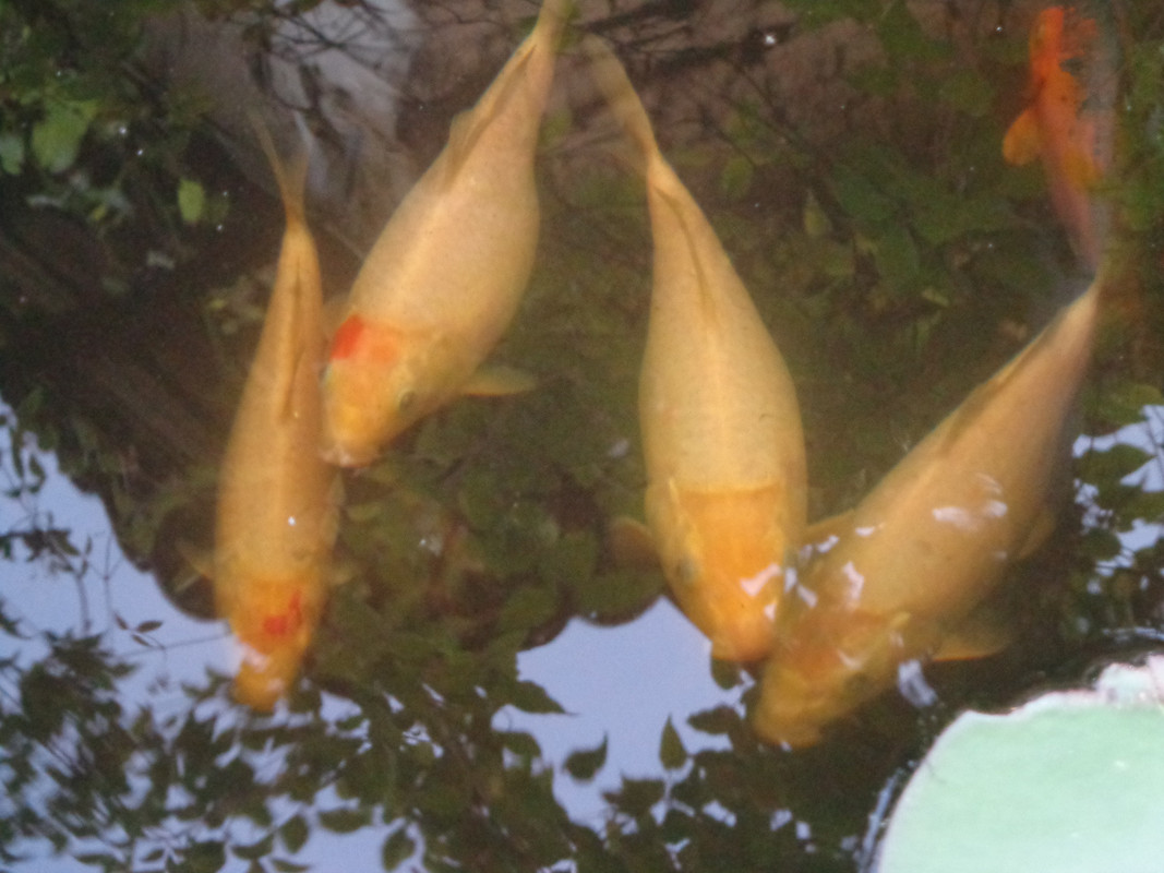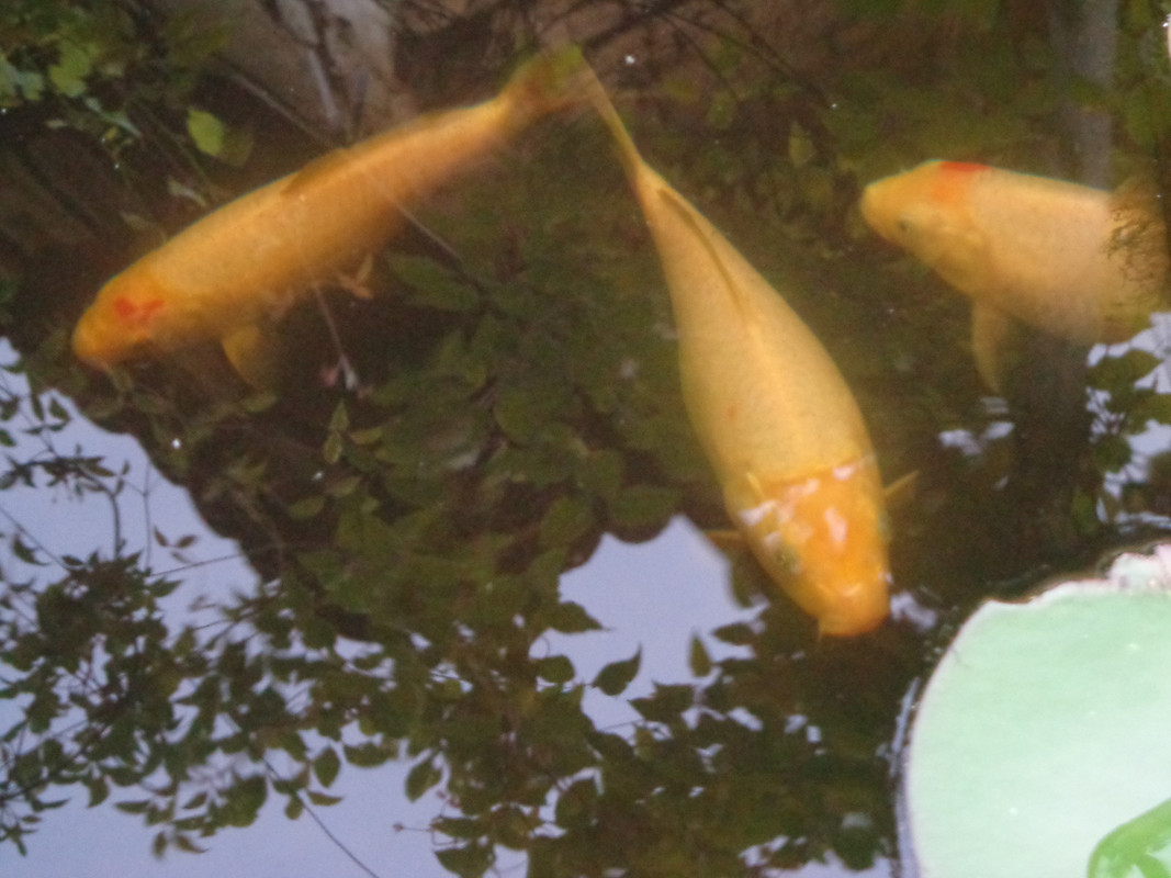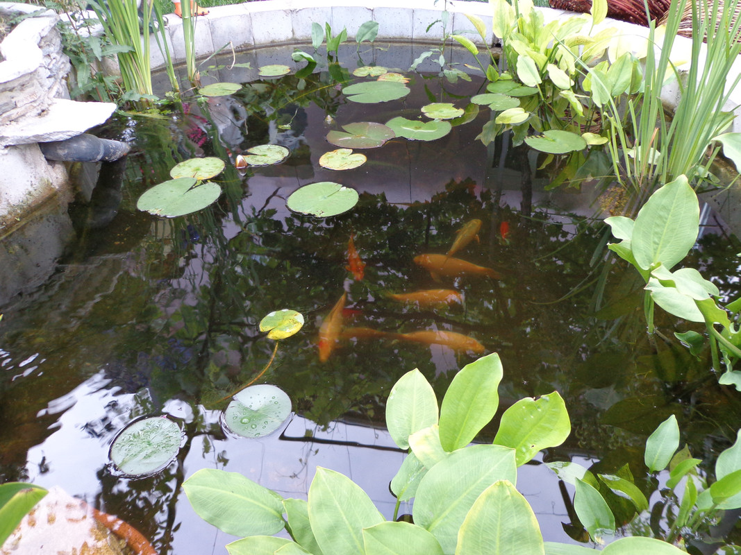 на преден план е воден живовляк, тази година не го пресадих и подозирам че цвета на листата е блед поради недостиг на хранителни вещества. Сега ще махна половината листа и ще се оправи цвета. За индийската кана немога да ти кажа не знам нищо. Иначе лилиите ги купих от колега във форума и ги посадих преди месец, ето вече има резултат. Просто стигнах до извода че е най - добре да си купувам от колеги растения и риби.