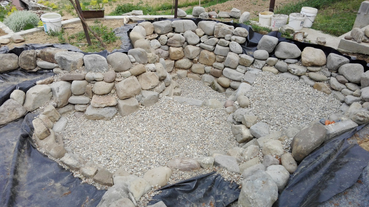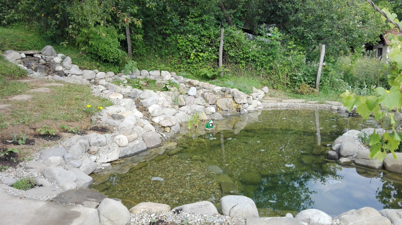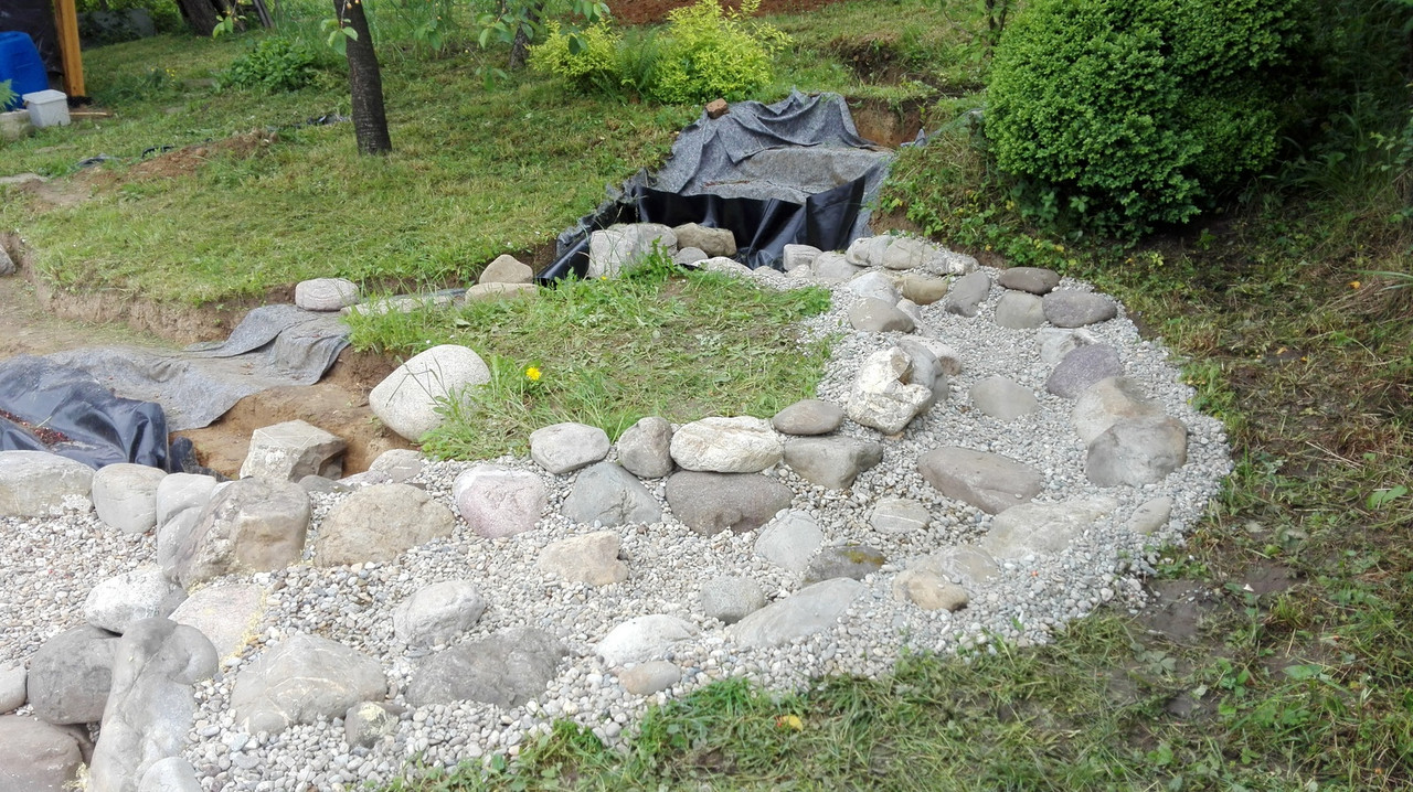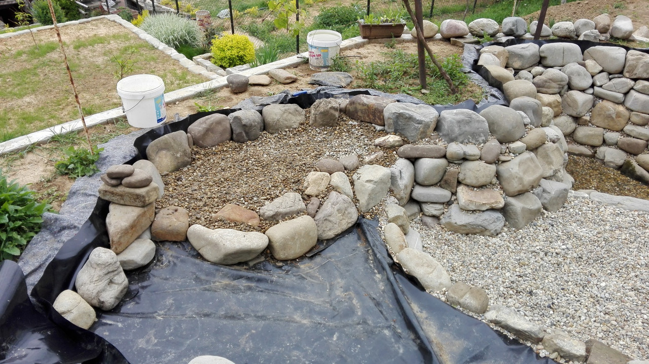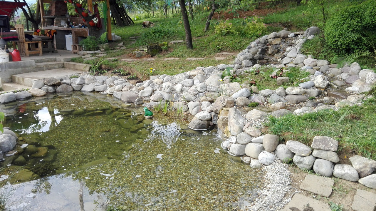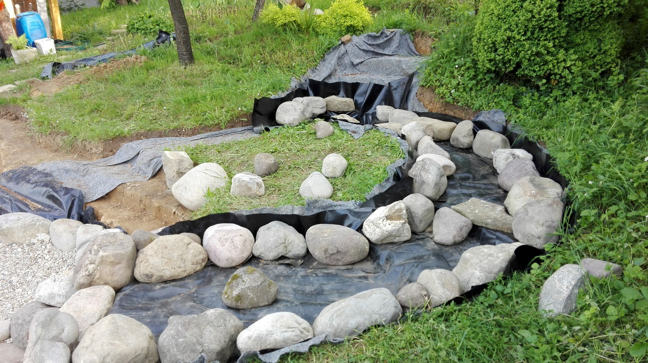 Много добре се получава , браво колега. Филца разбъркан ли е с цимент , ако не е може да се измие и камъните да паднат тук там но не е фатално. А дъното можеш да му направиш замазка силен разтвор цимент и пясък и докато е сурово още да растелиш филц  равномерно. Но така или иначе  след няколко месеца дъното няма да се вижда от какво е . Борда на езерцето как си го замислил , остави си повече запас от фолиото за да вдигнеш малко полезно е при силни валежи и вятър да не се пълни с боклуци и пръст. Късметлии са тези езерняци които имат по техния край такива камъни , аз не намерих.  Закопай си всички тръби и маркучи които ще ползваш за източване и доливане , спестява малко работа после. Предвиди си и преливник , при проливни валежи че съм виждал моето за 30мин. Порой как започва да прелива през преливника макар че до сега веднъж се е случвало ! Нивелирай г/д борда , да не дойде от единия край мн. Ниско а другия да се вижда голяма част от фолиото. Това се сещам за сега само като идеи  не са забележки , ако има друго ще пиша. Каквото направиш , това е вярното а корекции винаги ще има. Поздрави и благодаря за помпата супер е ;) Днеска реших да видя да не се е задръстила с боклуци щото е пуснах през скимера без кошничка за предпазване от едри боклуци , нищичко няма в нея явно всичко смила и най вече едни досадни буболечки дето ходеха по повърхноста на водата :D