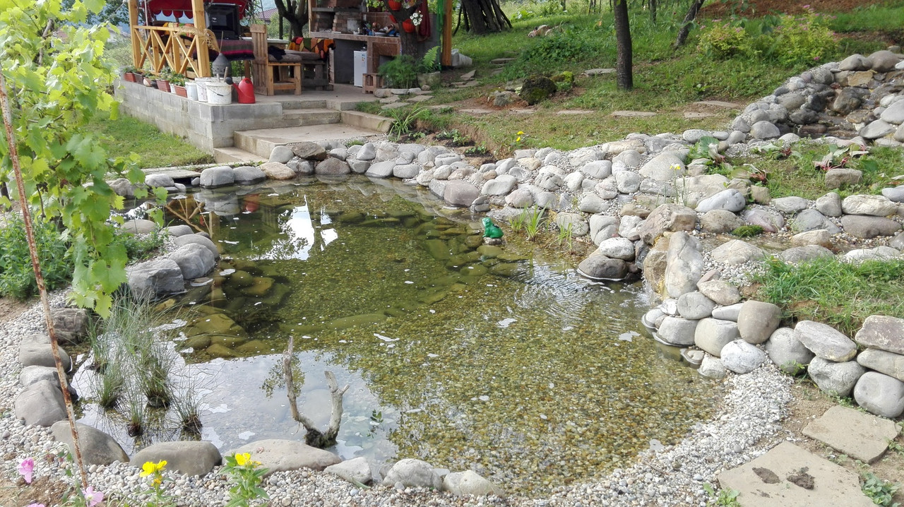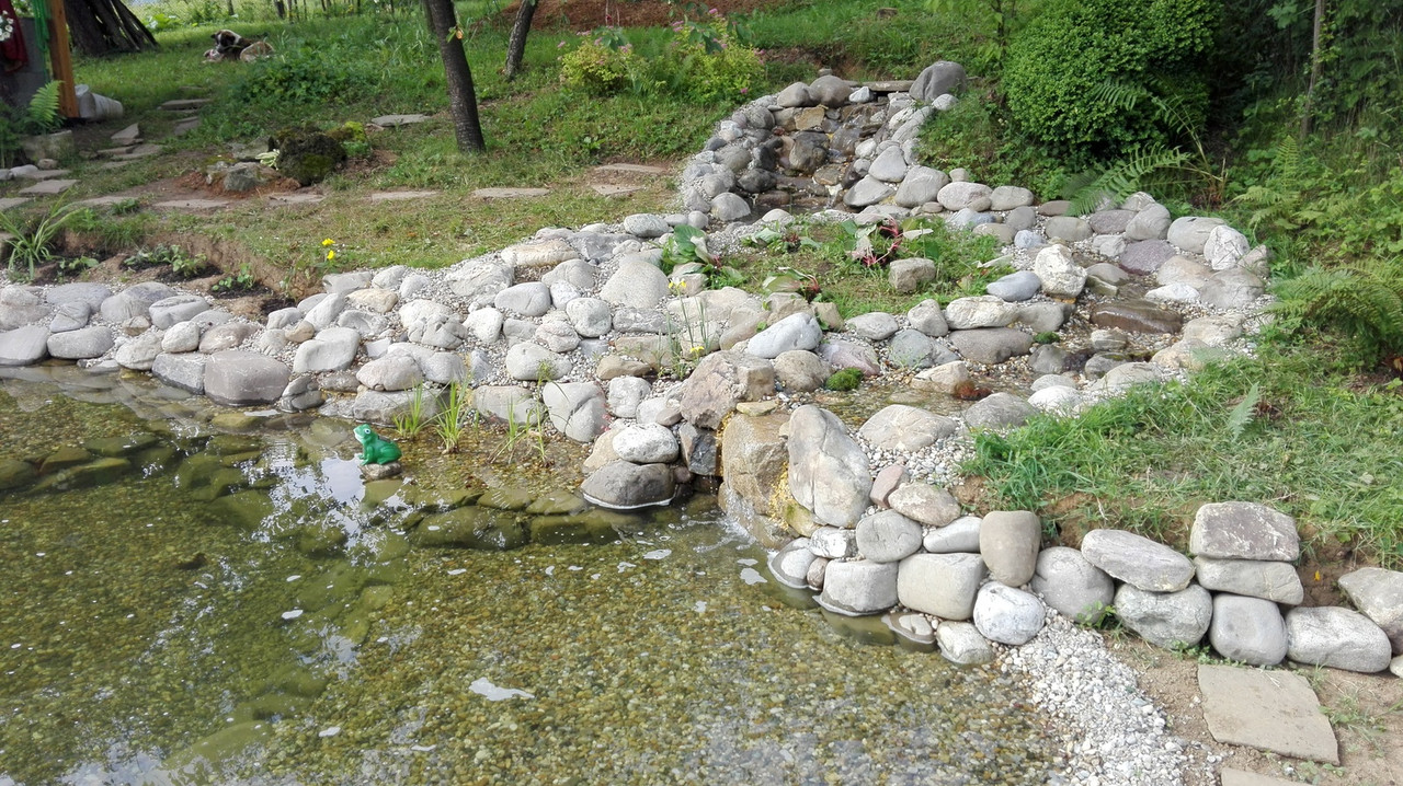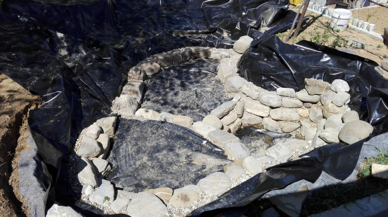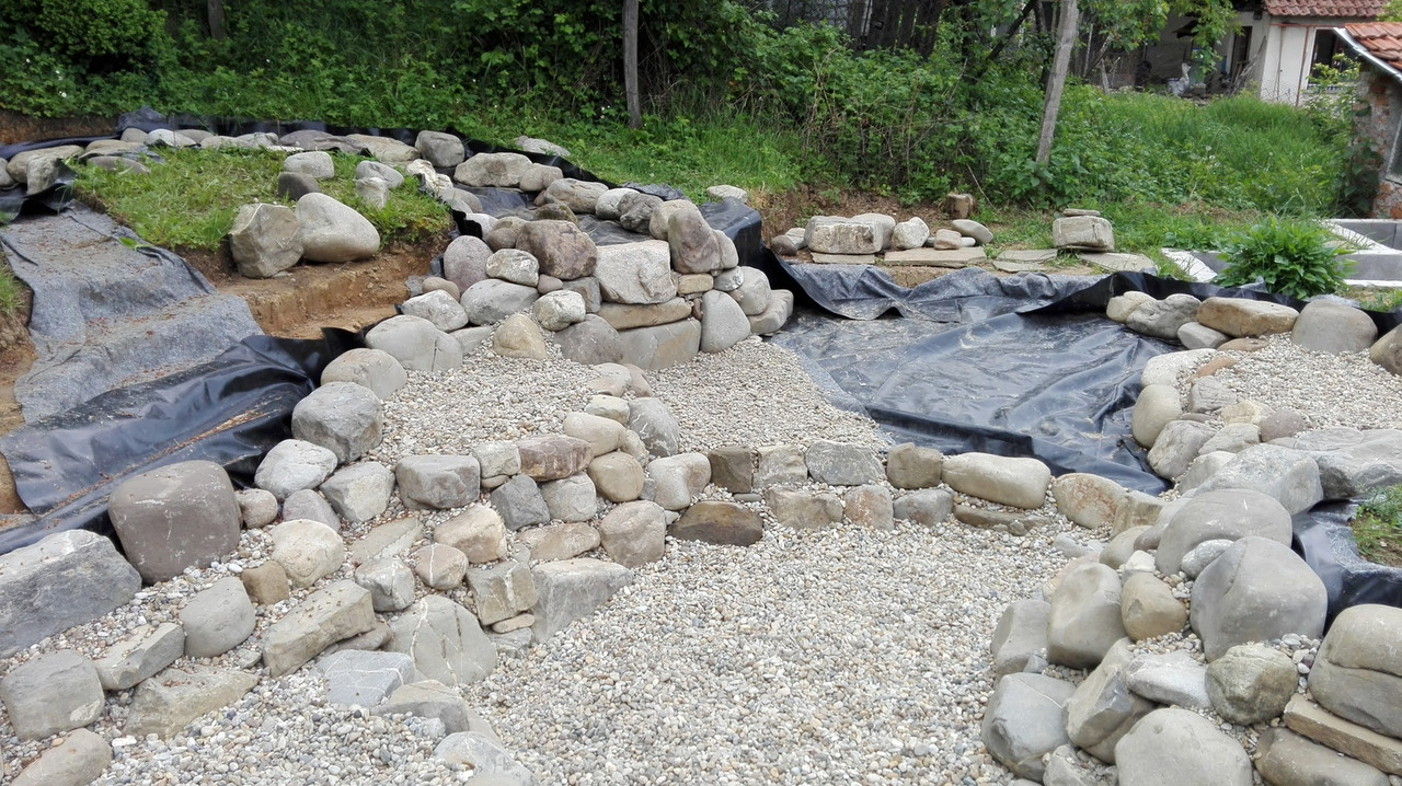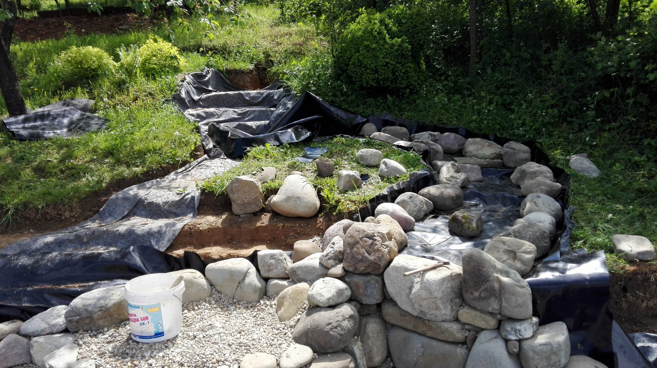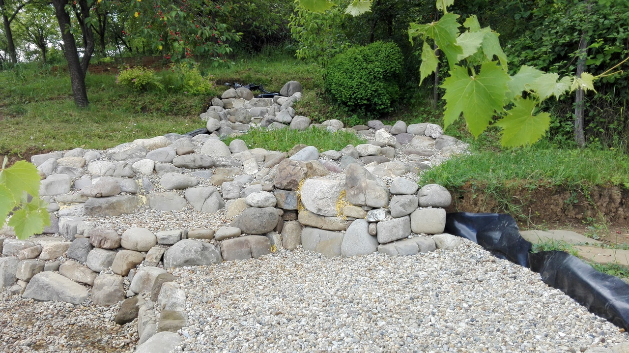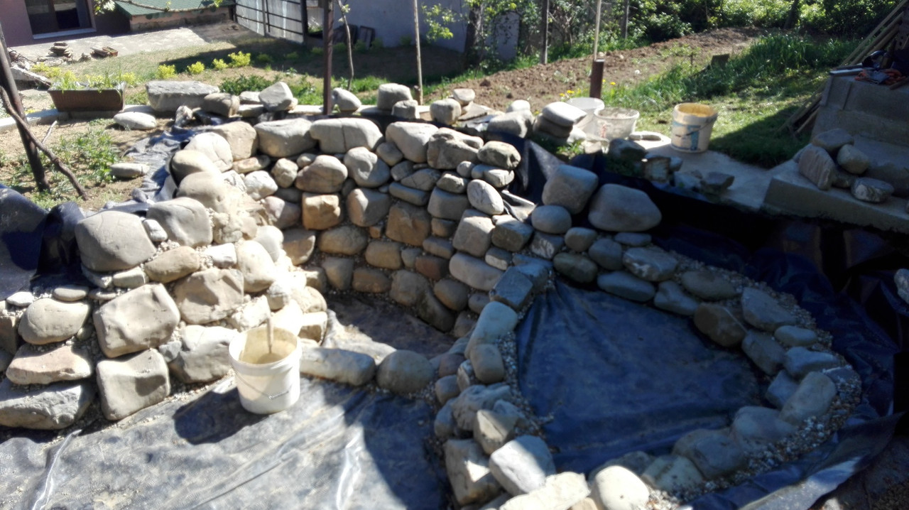 Много добре се получава , браво колега. Филца разбъркан ли е с цимент , ако не е може да се измие и камъните да паднат тук там но не е фатално. А дъното можеш да му направиш замазка силен разтвор цимент и пясък и докато е сурово още да растелиш филц  равномерно. Но така или иначе  след няколко месеца дъното няма да се вижда от какво е . Борда на езерцето как си го замислил , остави си повече запас от фолиото за да вдигнеш малко полезно е при силни валежи и вятър да не се пълни с боклуци и пръст. Късметлии са тези езерняци които имат по техния край такива камъни , аз не намерих.  Закопай си всички тръби и маркучи които ще ползваш за източване и доливане , спестява малко работа после. Предвиди си и преливник , при проливни валежи че съм виждал моето за 30мин. Порой как започва да прелива през преливника макар че до сега веднъж се е случвало ! Нивелирай г/д борда , да не дойде от единия край мн. Ниско а другия да се вижда голяма част от фолиото. Това се сещам за сега само като идеи  не са забележки , ако има друго ще пиша. Каквото направиш , това е вярното а корекции винаги ще има. Поздрави и благодаря за помпата супер е ;) Днеска реших да видя да не се е задръстила с боклуци щото е пуснах през скимера без кошничка за предпазване от едри боклуци , нищичко няма в нея явно всичко смила и най вече едни досадни буболечки дето ходеха по повърхноста на водата :D