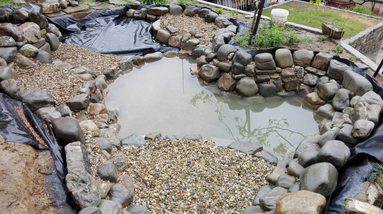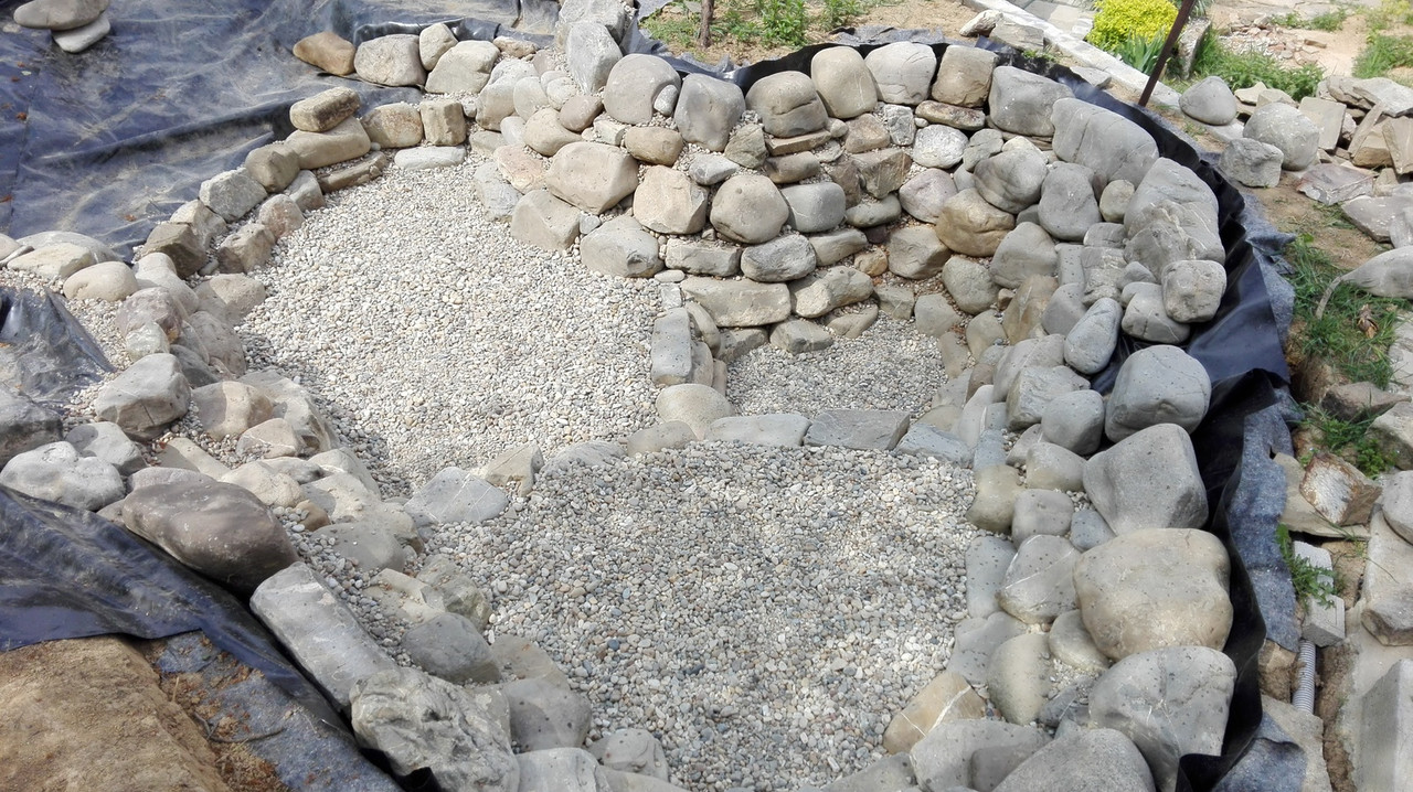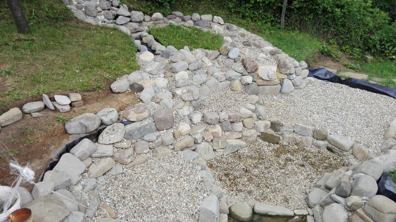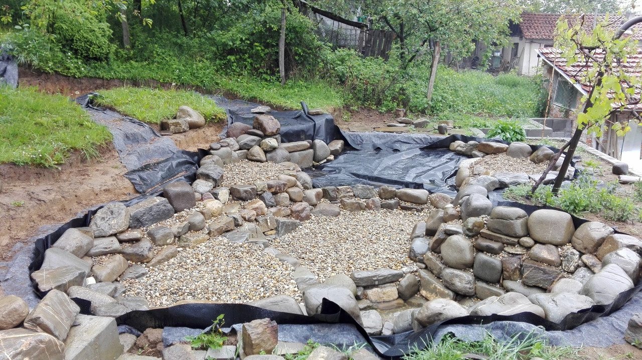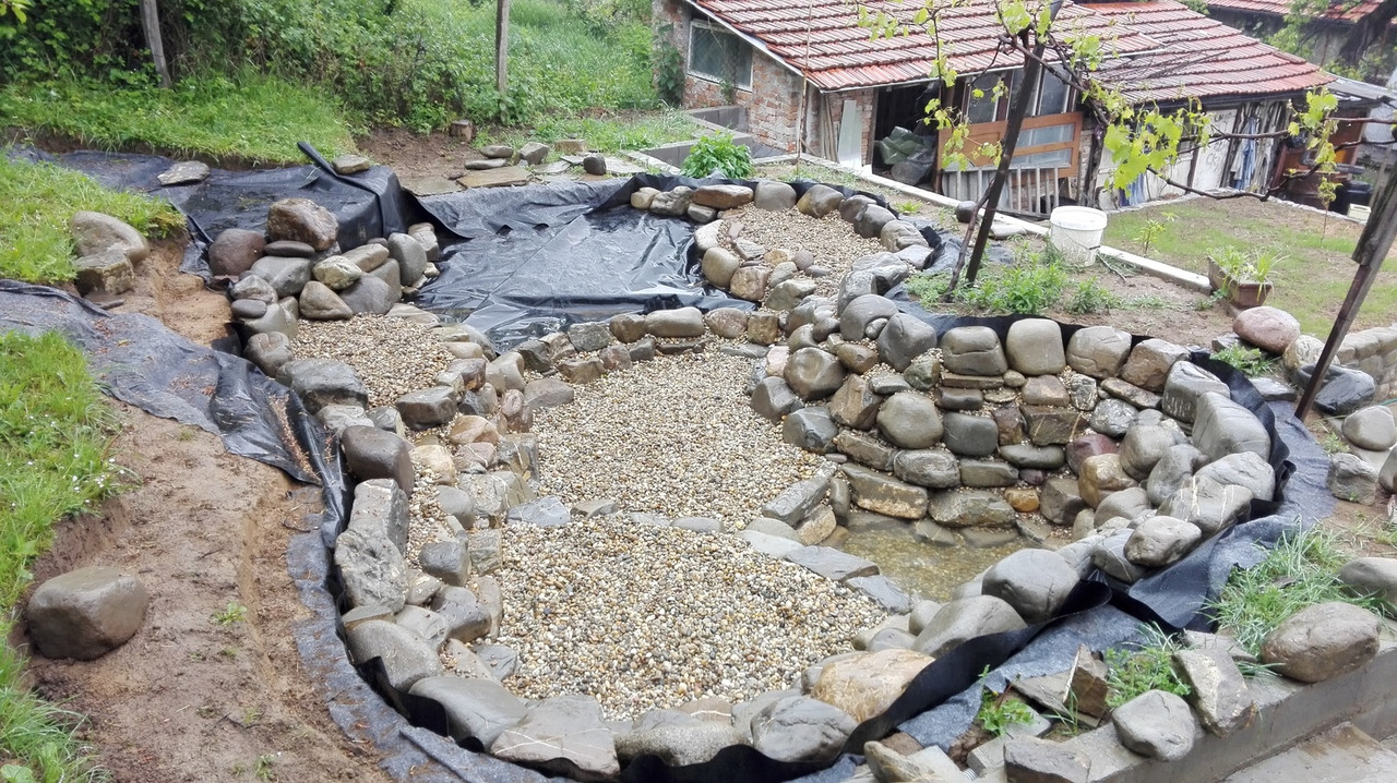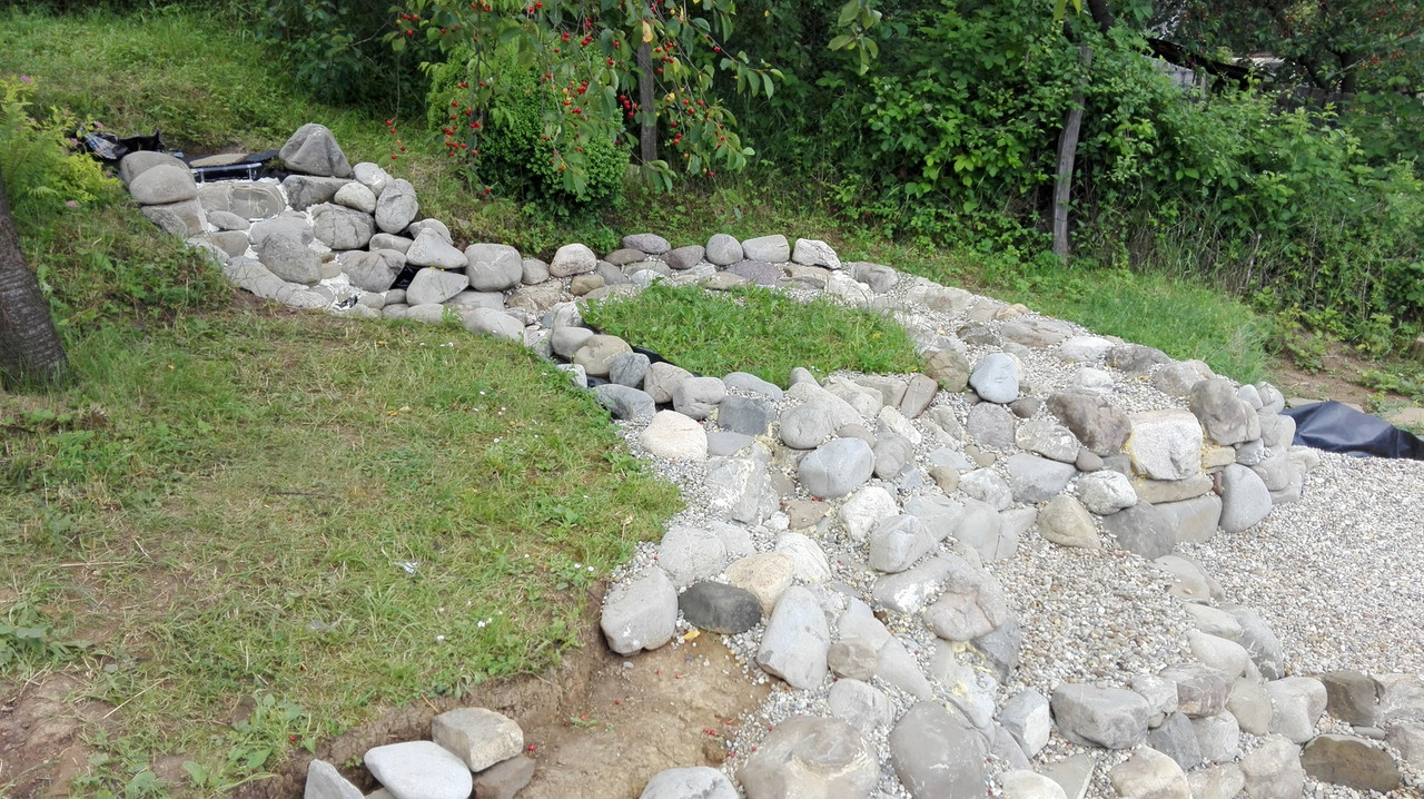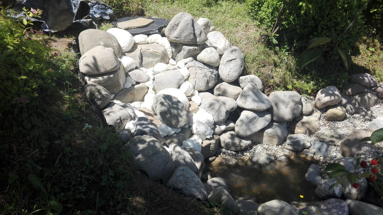 Много добре се получава , браво колега. Филца разбъркан ли е с цимент , ако не е може да се измие и камъните да паднат тук там но не е фатално. А дъното можеш да му направиш замазка силен разтвор цимент и пясък и докато е сурово още да растелиш филц  равномерно. Но така или иначе  след няколко месеца дъното няма да се вижда от какво е . Борда на езерцето как си го замислил , остави си повече запас от фолиото за да вдигнеш малко полезно е при силни валежи и вятър да не се пълни с боклуци и пръст. Късметлии са тези езерняци които имат по техния край такива камъни , аз не намерих.  Закопай си всички тръби и маркучи които ще ползваш за източване и доливане , спестява малко работа после. Предвиди си и преливник , при проливни валежи че съм виждал моето за 30мин. Порой как започва да прелива през преливника макар че до сега веднъж се е случвало ! Нивелирай г/д борда , да не дойде от единия край мн. Ниско а другия да се вижда голяма част от фолиото. Това се сещам за сега само като идеи  не са забележки , ако има друго ще пиша. Каквото направиш , това е вярното а корекции винаги ще има. Поздрави и благодаря за помпата супер е ;) Днеска реших да видя да не се е задръстила с боклуци щото е пуснах през скимера без кошничка за предпазване от едри боклуци , нищичко няма в нея явно всичко смила и най вече едни досадни буболечки дето ходеха по повърхноста на водата :D