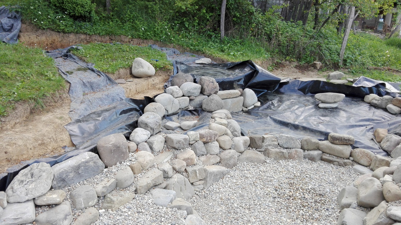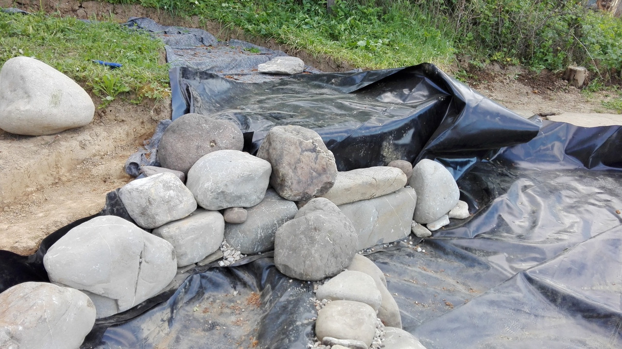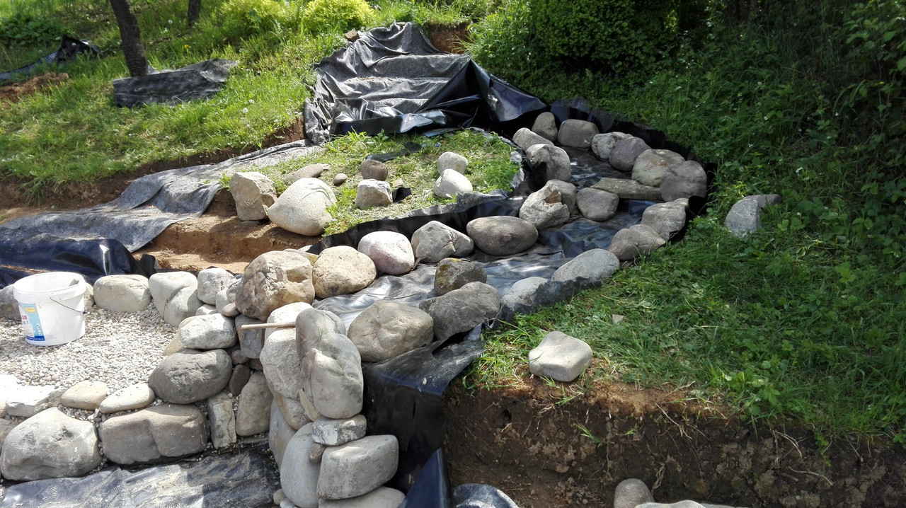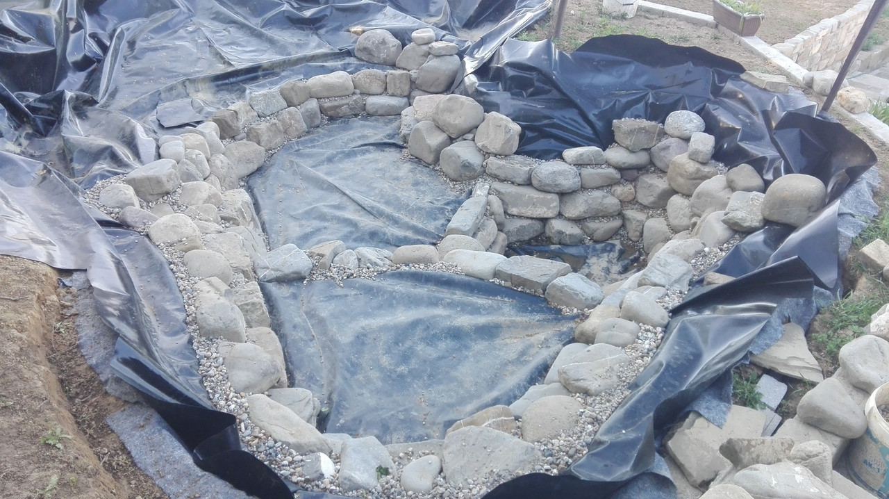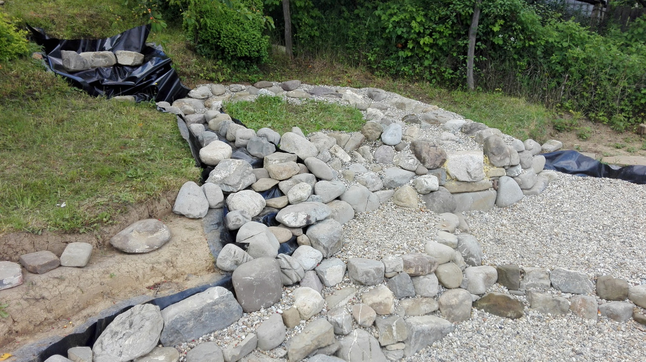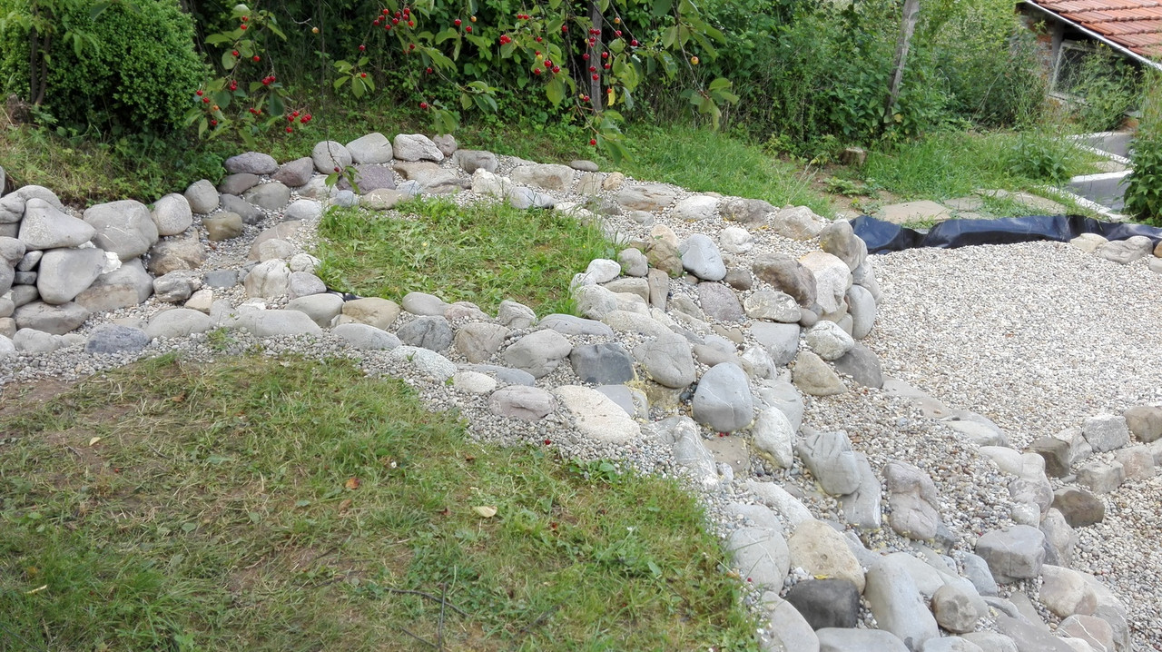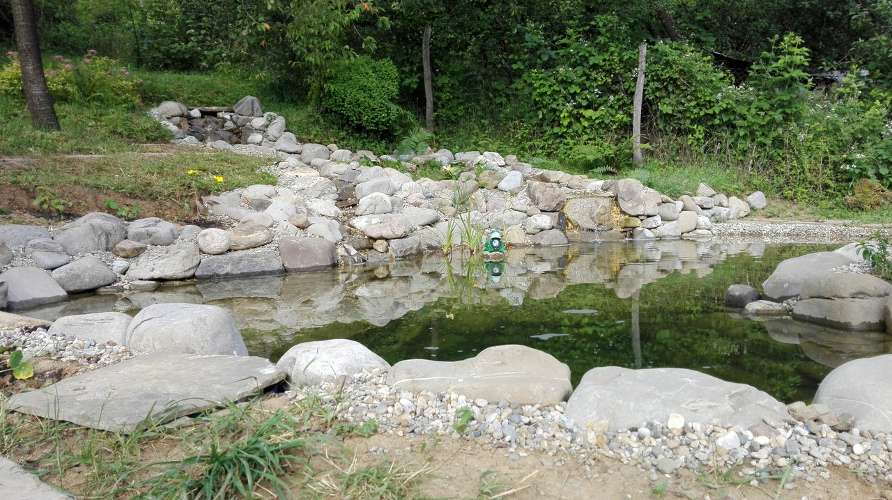 Много добре се получава , браво колега. Филца разбъркан ли е с цимент , ако не е може да се измие и камъните да паднат тук там но не е фатално. А дъното можеш да му направиш замазка силен разтвор цимент и пясък и докато е сурово още да растелиш филц  равномерно. Но така или иначе  след няколко месеца дъното няма да се вижда от какво е . Борда на езерцето как си го замислил , остави си повече запас от фолиото за да вдигнеш малко полезно е при силни валежи и вятър да не се пълни с боклуци и пръст. Късметлии са тези езерняци които имат по техния край такива камъни , аз не намерих.  Закопай си всички тръби и маркучи които ще ползваш за източване и доливане , спестява малко работа после. Предвиди си и преливник , при проливни валежи че съм виждал моето за 30мин. Порой как започва да прелива през преливника макар че до сега веднъж се е случвало ! Нивелирай г/д борда , да не дойде от единия край мн. Ниско а другия да се вижда голяма част от фолиото. Това се сещам за сега само като идеи  не са забележки , ако има друго ще пиша. Каквото направиш , това е вярното а корекции винаги ще има. Поздрави и благодаря за помпата супер е ;) Днеска реших да видя да не се е задръстила с боклуци щото е пуснах през скимера без кошничка за предпазване от едри боклуци , нищичко няма в нея явно всичко смила и най вече едни досадни буболечки дето ходеха по повърхноста на водата :D