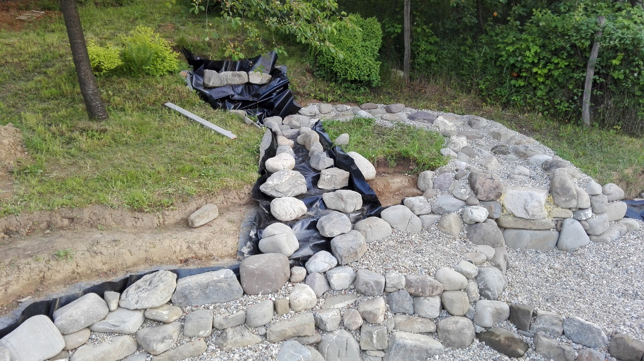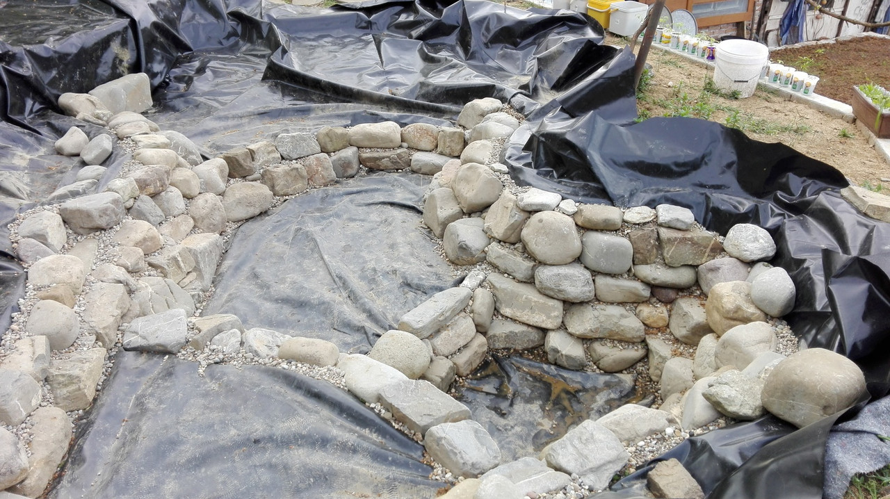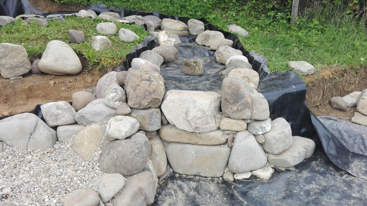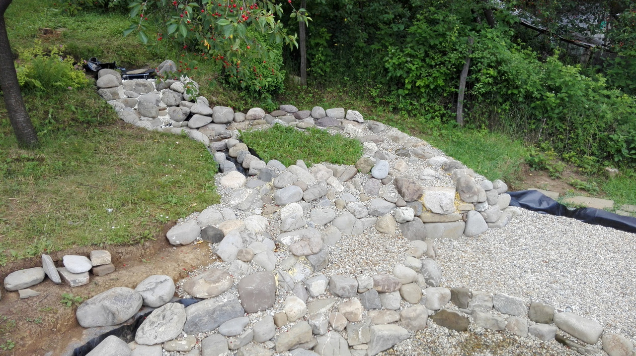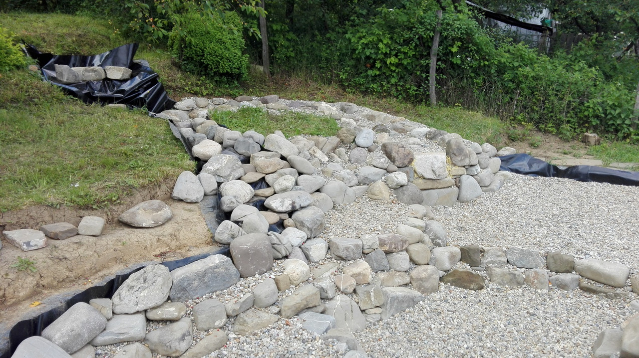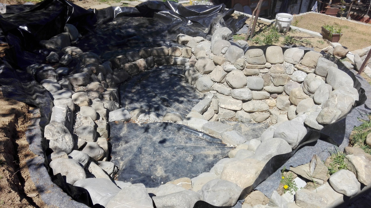 Много добре се получава , браво колега. Филца разбъркан ли е с цимент , ако не е може да се измие и камъните да паднат тук там но не е фатално. А дъното можеш да му направиш замазка силен разтвор цимент и пясък и докато е сурово още да растелиш филц  равномерно. Но така или иначе  след няколко месеца дъното няма да се вижда от какво е . Борда на езерцето как си го замислил , остави си повече запас от фолиото за да вдигнеш малко полезно е при силни валежи и вятър да не се пълни с боклуци и пръст. Късметлии са тези езерняци които имат по техния край такива камъни , аз не намерих.  Закопай си всички тръби и маркучи които ще ползваш за източване и доливане , спестява малко работа после. Предвиди си и преливник , при проливни валежи че съм виждал моето за 30мин. Порой как започва да прелива през преливника макар че до сега веднъж се е случвало ! Нивелирай г/д борда , да не дойде от единия край мн. Ниско а другия да се вижда голяма част от фолиото. Това се сещам за сега само като идеи  не са забележки , ако има друго ще пиша. Каквото направиш , това е вярното а корекции винаги ще има. Поздрави и благодаря за помпата супер е ;) Днеска реших да видя да не се е задръстила с боклуци щото е пуснах през скимера без кошничка за предпазване от едри боклуци , нищичко няма в нея явно всичко смила и най вече едни досадни буболечки дето ходеха по повърхноста на водата :D