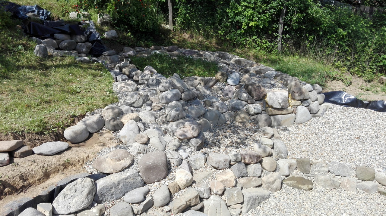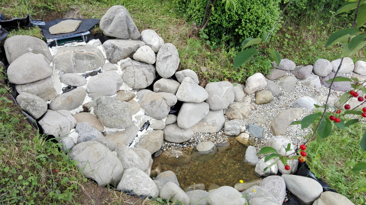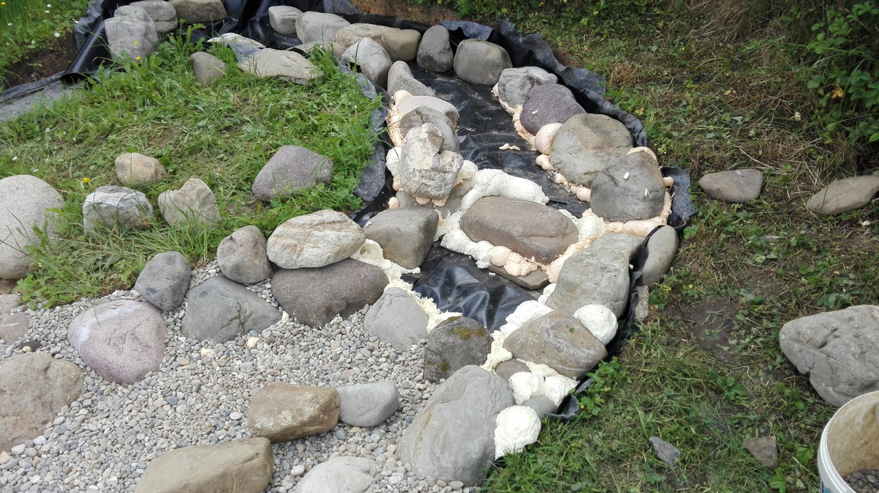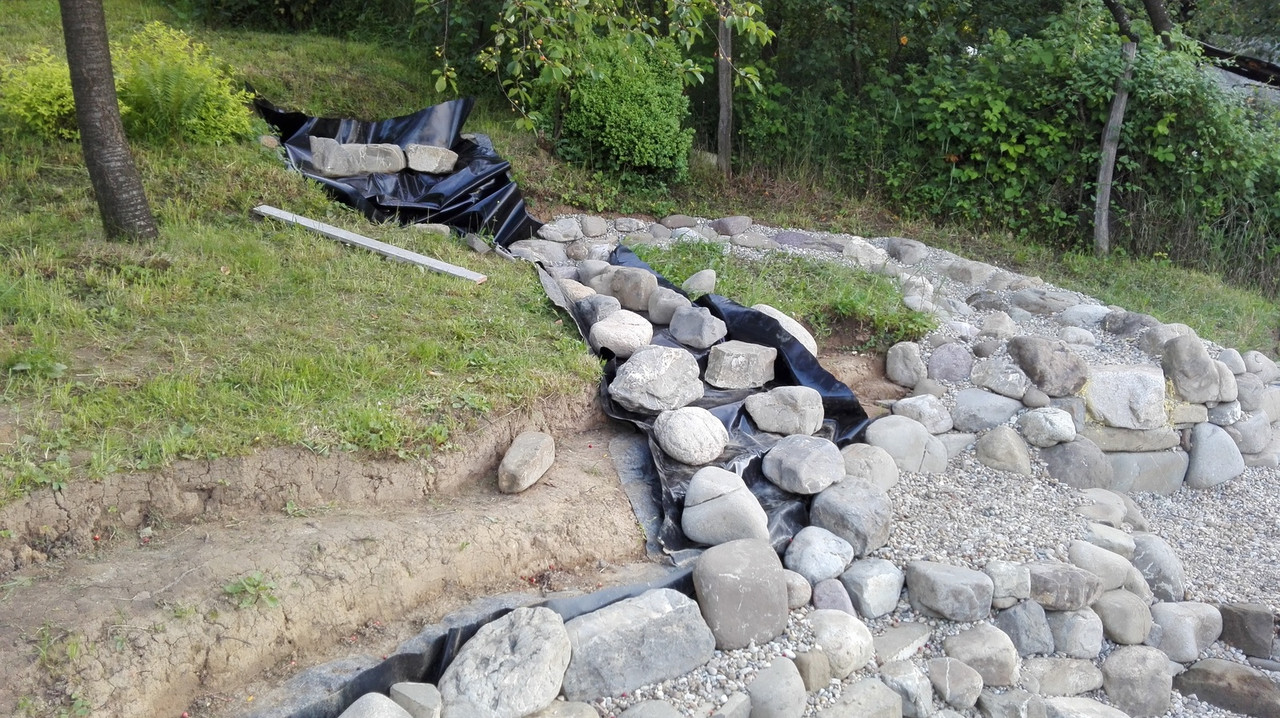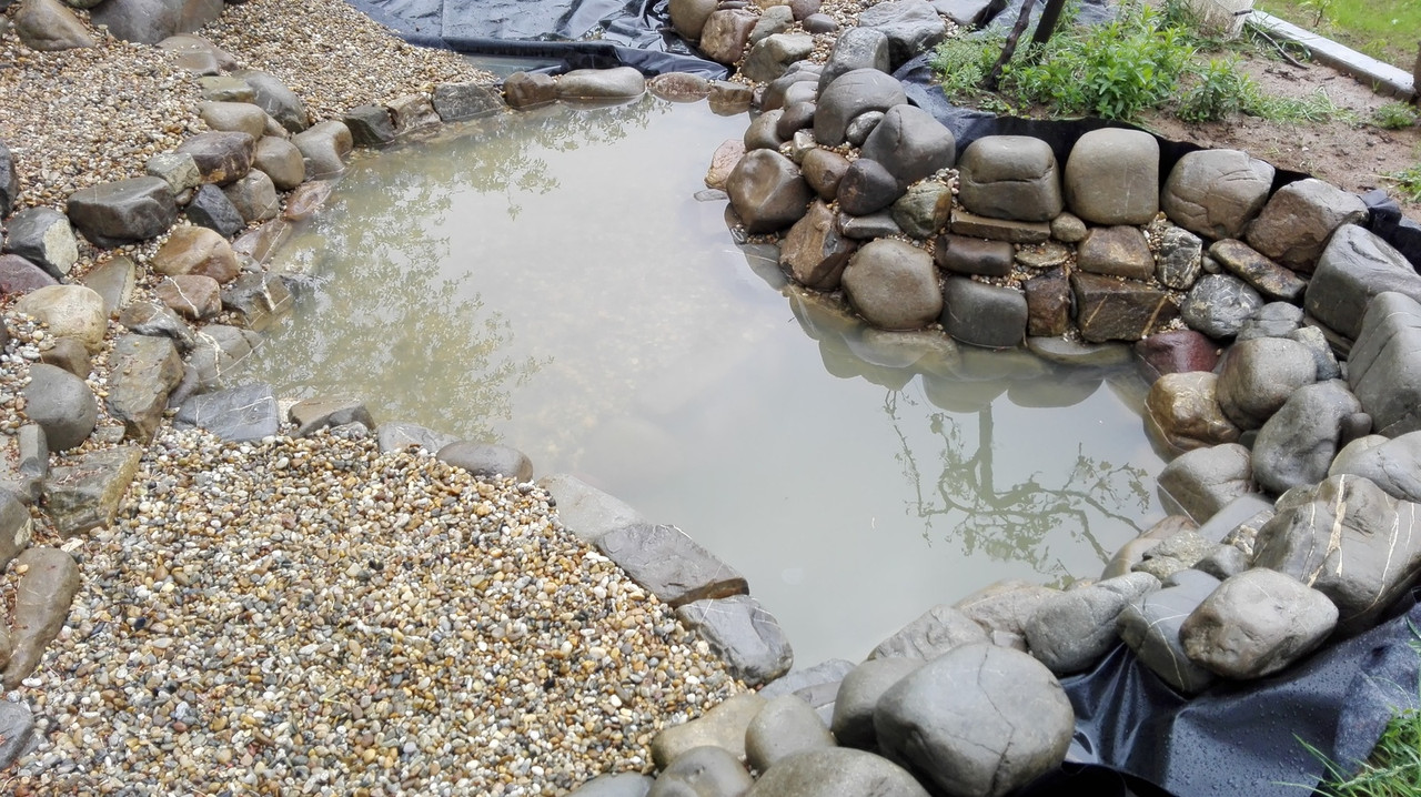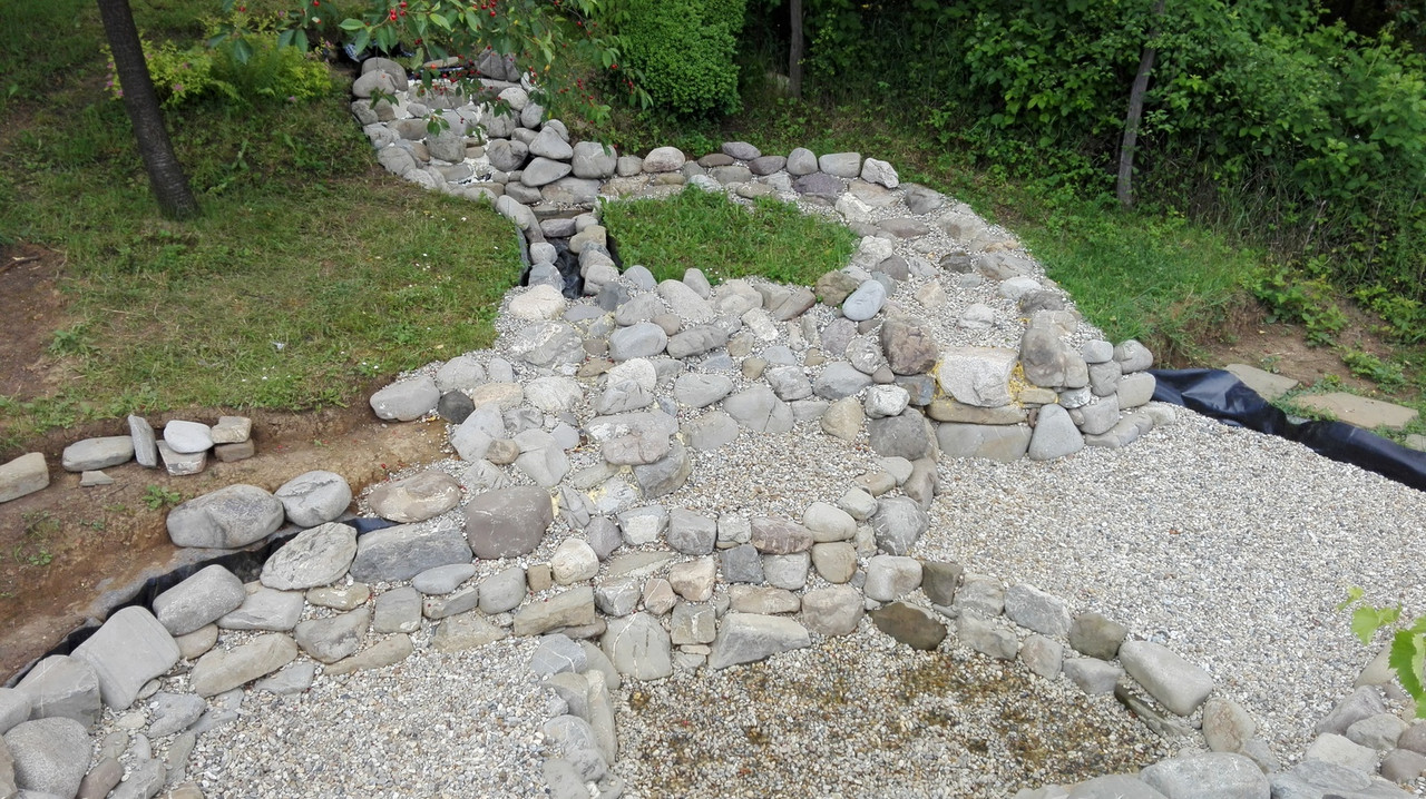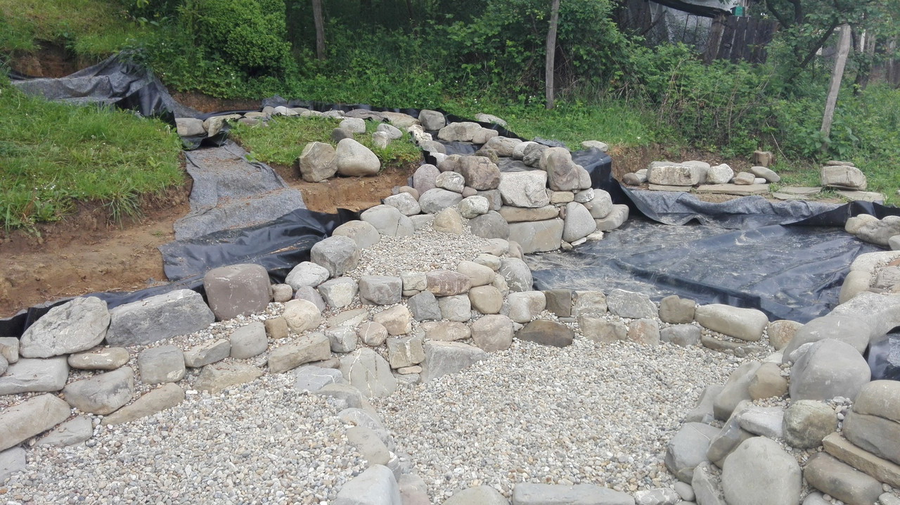 Много добре се получава , браво колега. Филца разбъркан ли е с цимент , ако не е може да се измие и камъните да паднат тук там но не е фатално. А дъното можеш да му направиш замазка силен разтвор цимент и пясък и докато е сурово още да растелиш филц  равномерно. Но така или иначе  след няколко месеца дъното няма да се вижда от какво е . Борда на езерцето как си го замислил , остави си повече запас от фолиото за да вдигнеш малко полезно е при силни валежи и вятър да не се пълни с боклуци и пръст. Късметлии са тези езерняци които имат по техния край такива камъни , аз не намерих.  Закопай си всички тръби и маркучи които ще ползваш за източване и доливане , спестява малко работа после. Предвиди си и преливник , при проливни валежи че съм виждал моето за 30мин. Порой как започва да прелива през преливника макар че до сега веднъж се е случвало ! Нивелирай г/д борда , да не дойде от единия край мн. Ниско а другия да се вижда голяма част от фолиото. Това се сещам за сега само като идеи  не са забележки , ако има друго ще пиша. Каквото направиш , това е вярното а корекции винаги ще има. Поздрави и благодаря за помпата супер е ;) Днеска реших да видя да не се е задръстила с боклуци щото е пуснах през скимера без кошничка за предпазване от едри боклуци , нищичко няма в нея явно всичко смила и най вече едни досадни буболечки дето ходеха по повърхноста на водата :D