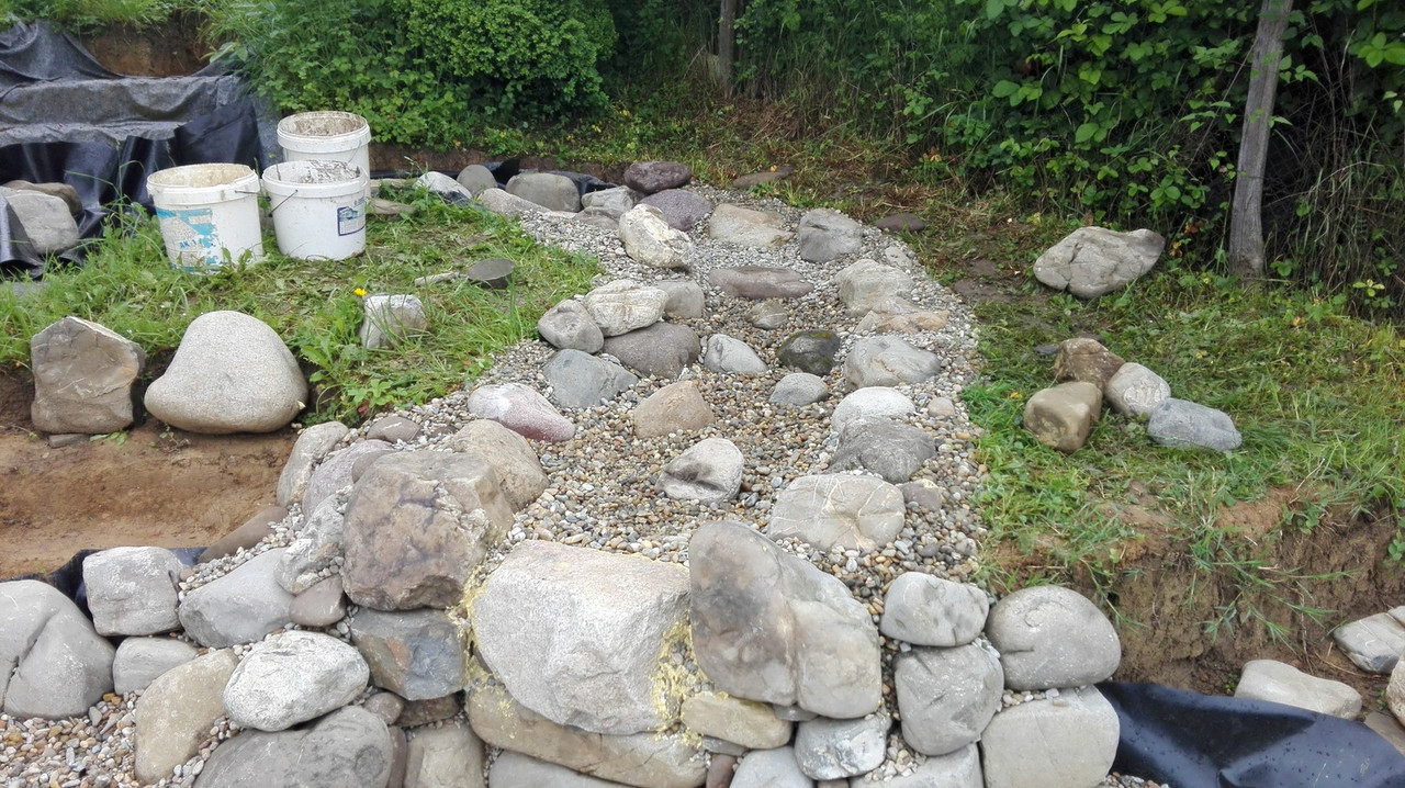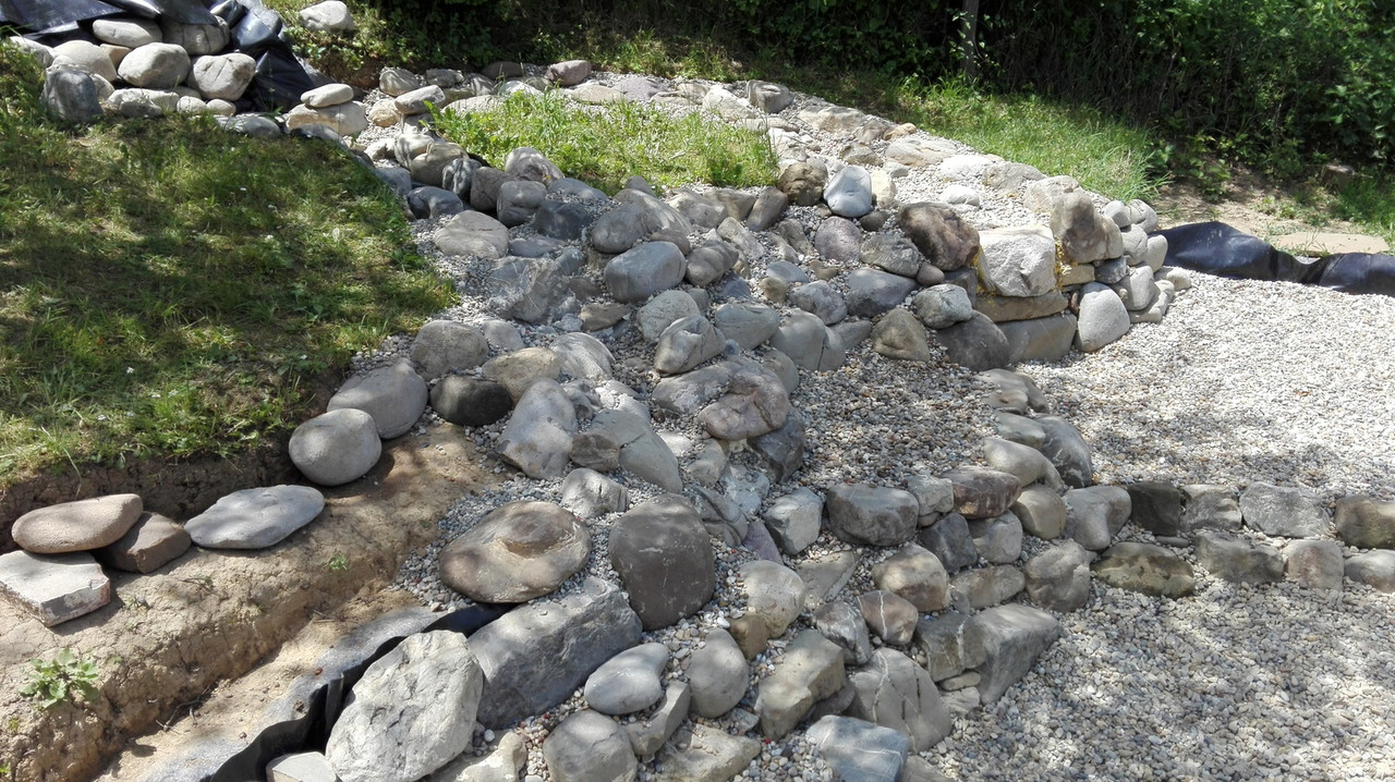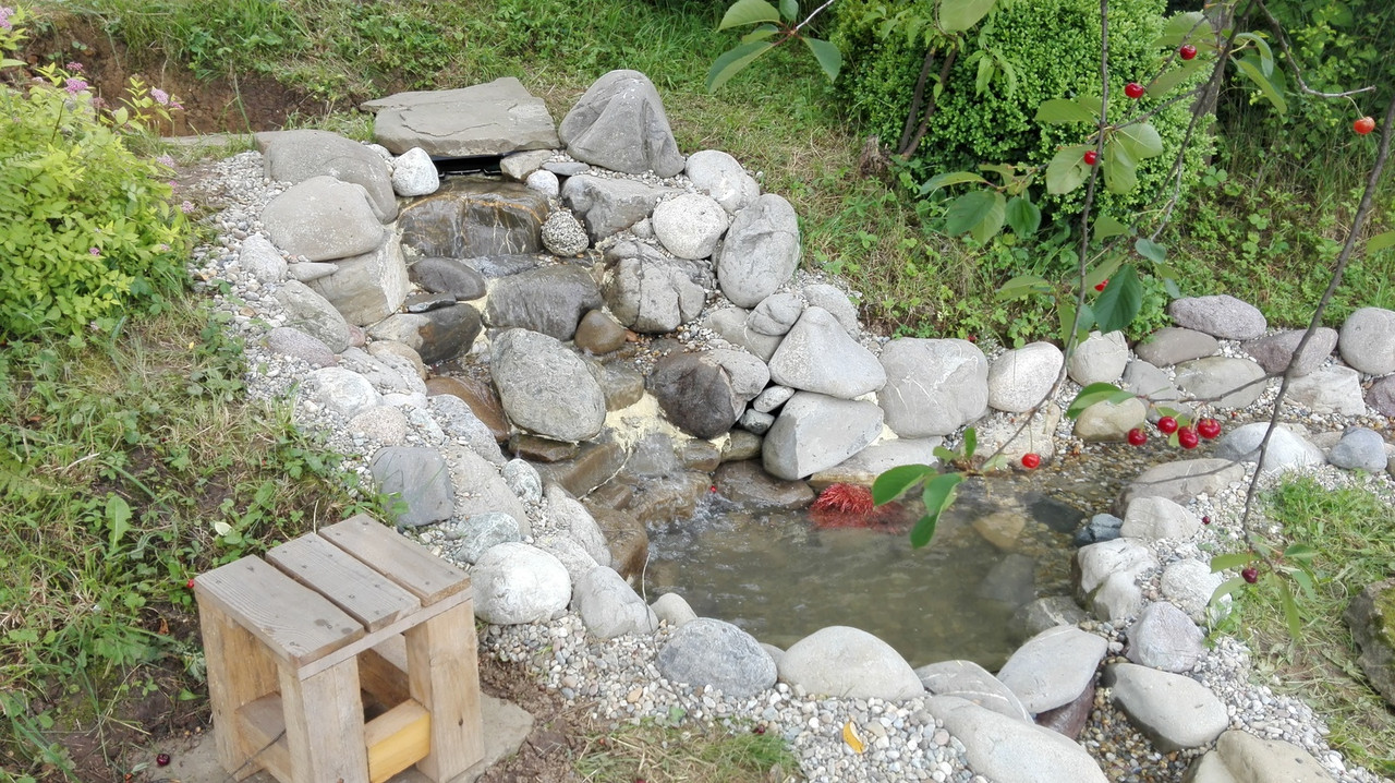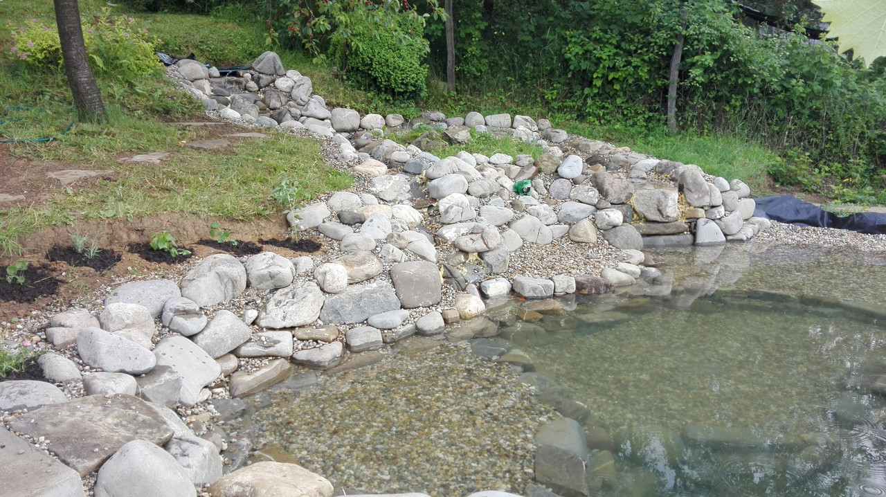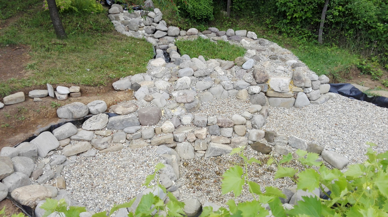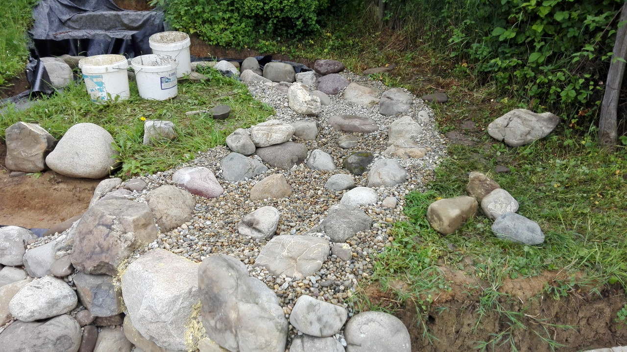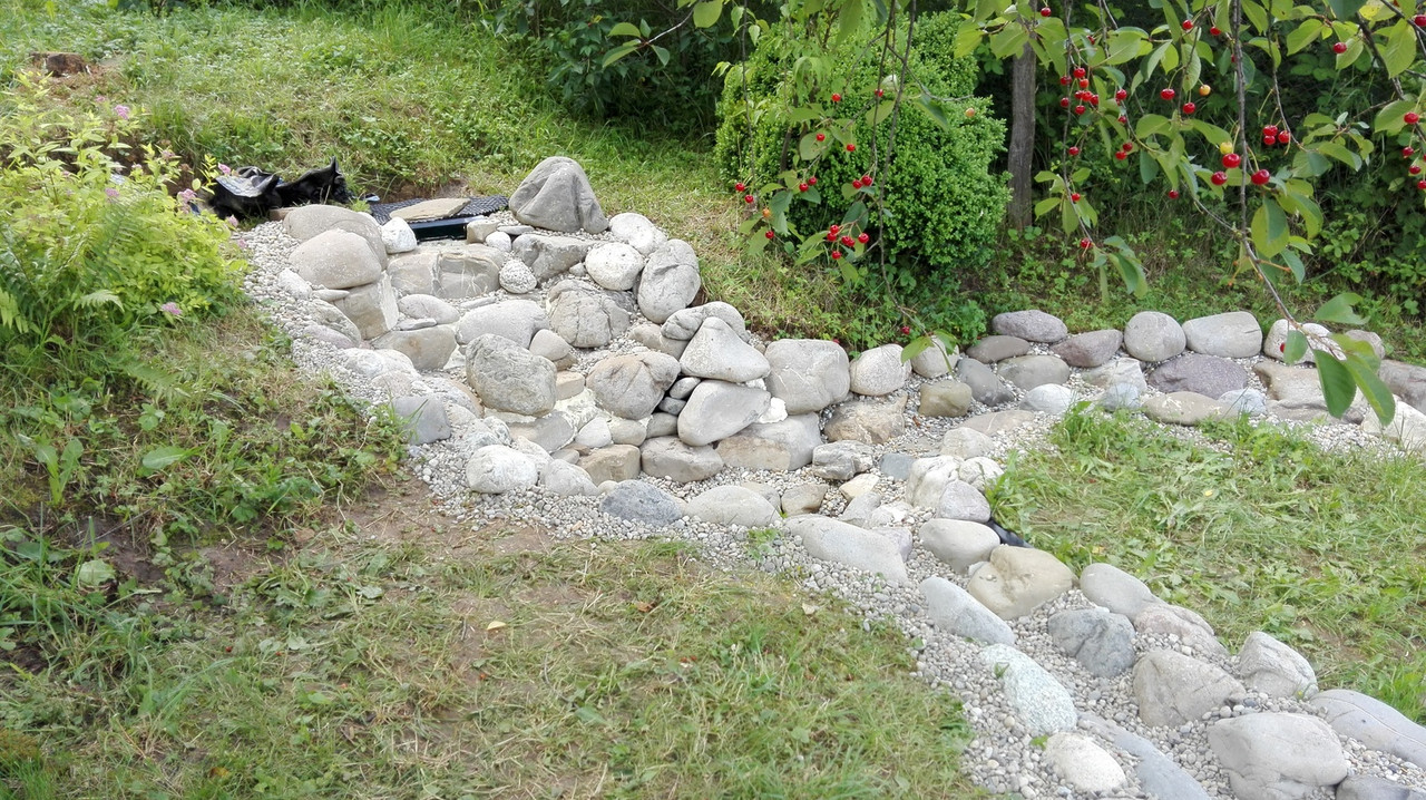 Много добре се получава , браво колега. Филца разбъркан ли е с цимент , ако не е може да се измие и камъните да паднат тук там но не е фатално. А дъното можеш да му направиш замазка силен разтвор цимент и пясък и докато е сурово още да растелиш филц  равномерно. Но така или иначе  след няколко месеца дъното няма да се вижда от какво е . Борда на езерцето как си го замислил , остави си повече запас от фолиото за да вдигнеш малко полезно е при силни валежи и вятър да не се пълни с боклуци и пръст. Късметлии са тези езерняци които имат по техния край такива камъни , аз не намерих.  Закопай си всички тръби и маркучи които ще ползваш за източване и доливане , спестява малко работа после. Предвиди си и преливник , при проливни валежи че съм виждал моето за 30мин. Порой как започва да прелива през преливника макар че до сега веднъж се е случвало ! Нивелирай г/д борда , да не дойде от единия край мн. Ниско а другия да се вижда голяма част от фолиото. Това се сещам за сега само като идеи  не са забележки , ако има друго ще пиша. Каквото направиш , това е вярното а корекции винаги ще има. Поздрави и благодаря за помпата супер е ;) Днеска реших да видя да не се е задръстила с боклуци щото е пуснах през скимера без кошничка за предпазване от едри боклуци , нищичко няма в нея явно всичко смила и най вече едни досадни буболечки дето ходеха по повърхноста на водата :D
