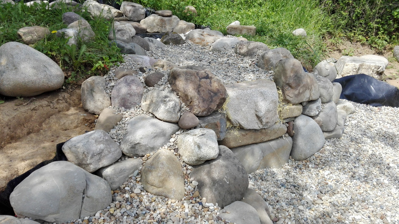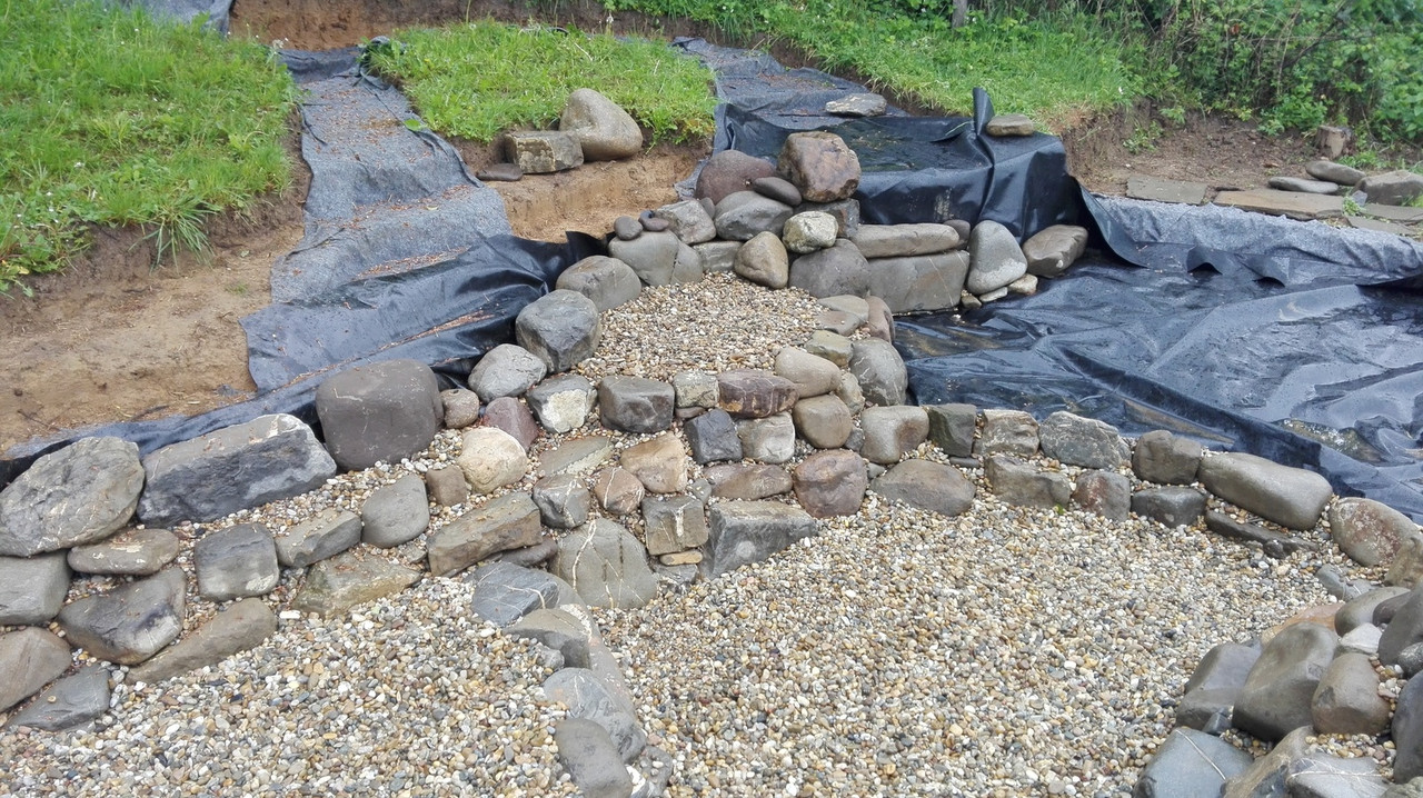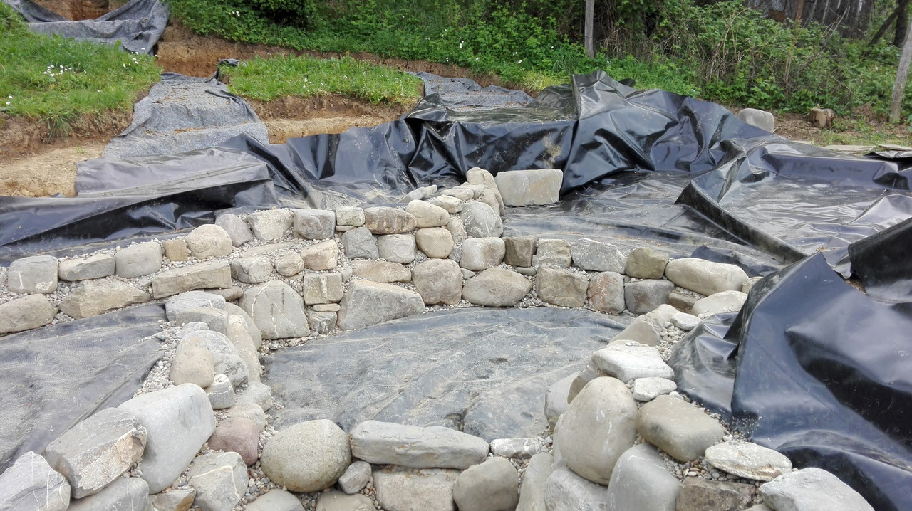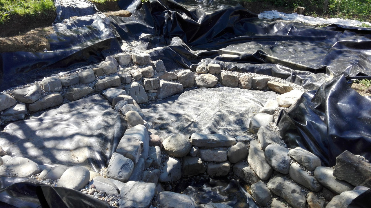 Първо поздравления за начинанието! 0,5 е достатъчно здраво, моето е така вече 5 година и няма проблем, спокойно си ходя и при пълно и при празно езеро. Аз обаче имам едно питане относно начина на редене на камъните и поставянето на филц на дъното. Как възнамеряваш да го почистваш?, обикновено езерото се източва и повечето от нас влизат с водоструйката и мият, при свободно наредени камъните с филца между тях, ми се струва че ще събереш всички дребни камъчета на дъното. Също така ми се струва поради същата причина, дъното да го оставиш свободно или ако не искаш да се вижда, тънък слой пясък. Помисли ги добре нещата, дънен сифон е много желателен, все пак един път го правиш, а после доста трудно се преправя. Поздрави!