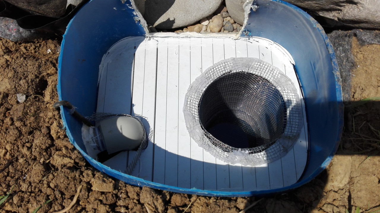За сифон ще му трябва и вкопан филтър на нивото на водата, а като гледам снимките, май няма подходящо място където да го изгради.