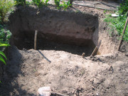 Крайният (но не изцяло завършен) резултат е езерце с размери 5м/2.70м/4м/3.10м, дълбочина 1.20 в единия край и 1.40м в другия край.