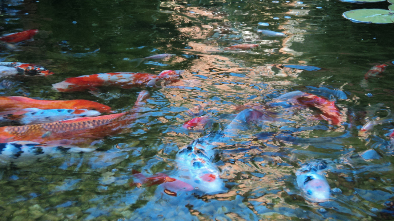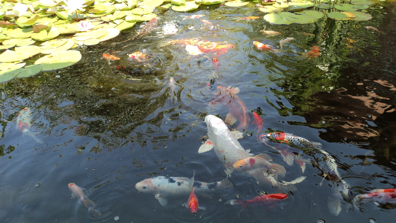 благодаря на всички,не знам на кого пъирви да отговоря,най голямата риба е 55 см,имам два филтъра  за 45000 литра без риби и един водопаден с ув лампи.лилиите са засадени в грунда,а растението което стърчи не си спомням името.големината на езерото е 25 кв.м  около 15000 литра.за котките имам ротвайлер
