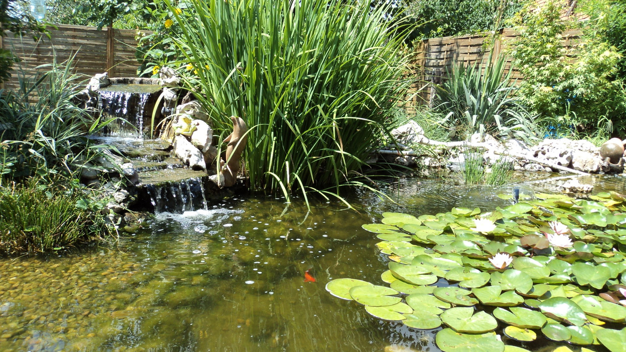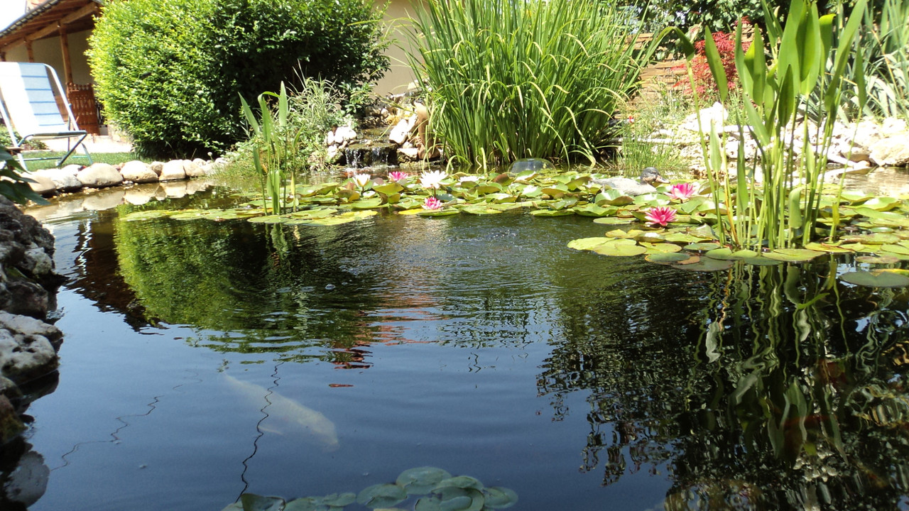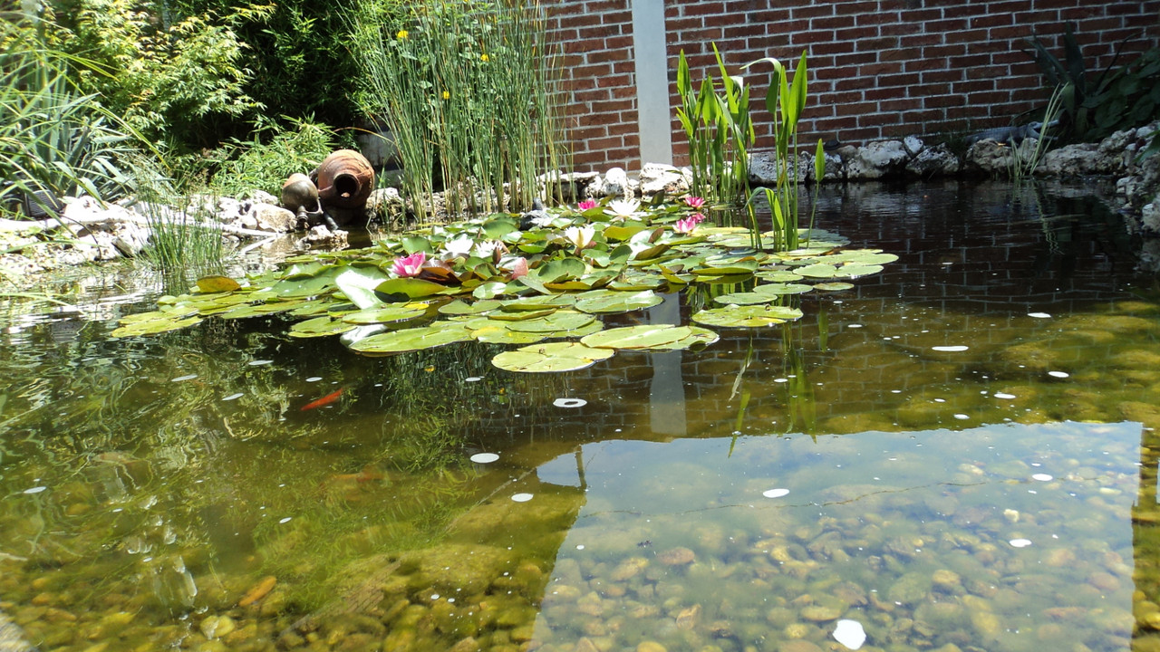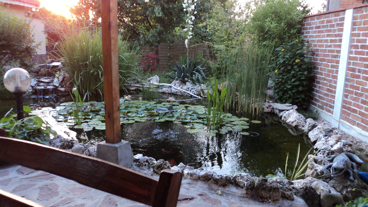 Добре подбрано сенчесто място, отлична филтрация, много растения, UV стерилизация, усет към красотата и резултата е налице. *privet*