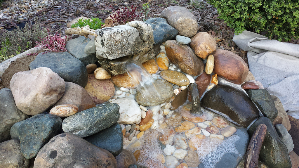 Има какво да се пооправи по каскадата. По принцип се ползват големи плоски камъни, за да се полчуи ефект на водопад, а не както е при теб 2-3 малки долепени един до друг.