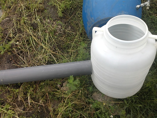 това като подсигуряване помпата в последния бидон да не остава без вода.Връзката между самите бидони също мисля да е с парчета такава тръба,като при утайника мисля входната тръба от езерото да влиза в средата на бидона и с накрайник отвътре,обърнат настрани водата да се завърта вътре и частиците да се утаяват по-добре.След това връзката към средния бидон мисля да е малко по-нагоре от входната тръба от езерото.В горната част мисля да влиза водата и в последния бидон,където ще е топнато едно Бибо половин цол и оттам с маркуч от височина обратно в езерото.Не съм решил още като вкарам тръбите в бидоните как ще ги застопоря за стените им,но ако бидоните са плътно притиснати не вярвам да излязат.