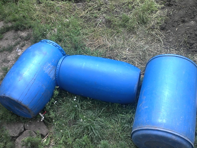 смятам да използвам тези три бидона за филтър,като най-левият ще е утайник,средният до средата ще е пълен с филц,а останалото с дунапрен и пречистената вода ще влиза в третия,където ще е и помпата