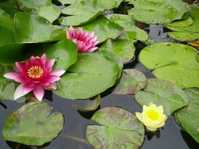 Овен водни лилии - три цвята има и водни растения, на които не знаем наименованията. Водните лилии никога не са пресаждани, но всяка година вадим да даваме на познати, които си правят езерца. Къде зарибени от нашето, къде от снимки от нета ...