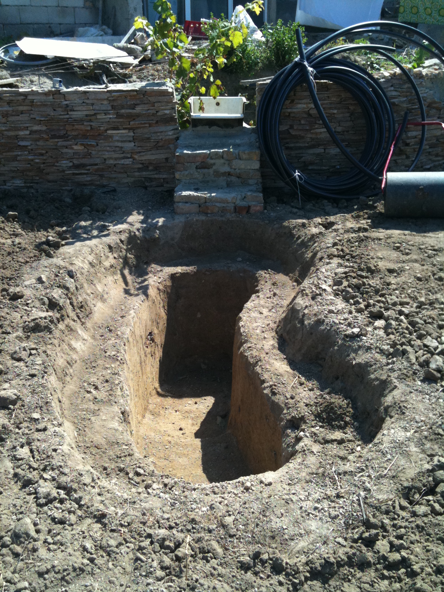 Миналата година започнахме езерце, което презимува на дупка и сега сме на финалната права. Та реших да кача малко снимки и полезно инфо, което  надявам се би било полезно, като отправна точка за някого. Като имам и малко въпроси, но тях ще оставя за края. Езерото е с размери 1.5/3м в най-дълбоката част е 1м. Намира се до Варна.