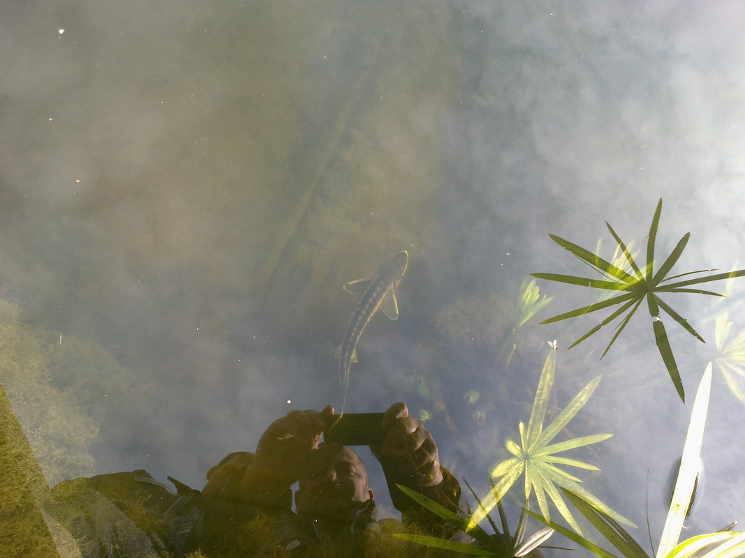 Тази седмица при нас беше доста хубаво време и температурата на водата се вдигна на 7градуса вследствие на което имаше голямо раздвижване на рибите, златните всички са на топло горе но коите си стояха долу.