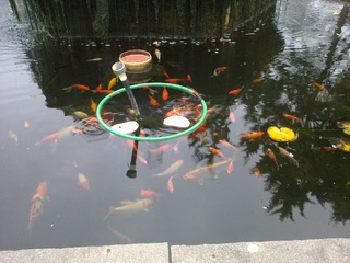 Тази седмица при нас беше доста хубаво време и температурата на водата се вдигна на 7градуса вследствие на което имаше голямо раздвижване на рибите, златните всички са на топло горе но коите си стояха долу.