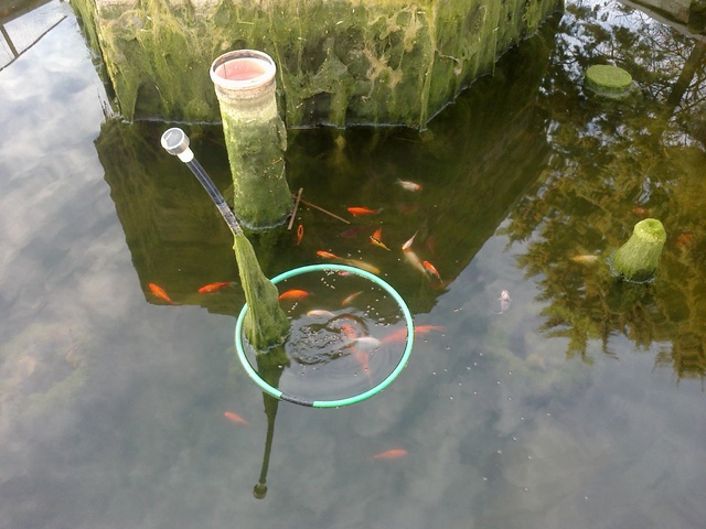 Тази седмица при нас беше доста хубаво време и температурата на водата се вдигна на 7градуса вследствие на което имаше голямо раздвижване на рибите, златните всички са на топло горе но коите си стояха долу.