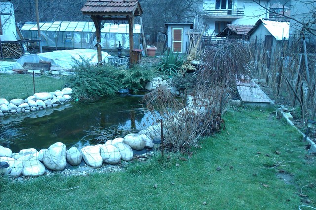 Отдавна не съм писал, ето няколко снимки от вчера. Лед вече няма, сняг засега също, рибките похапват в по- топлите дни, жертви липсват. Имаме си котка, която виси нонстоп на него, май ще хваща пътя ако изчезне някоя риба  :-)