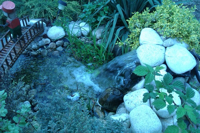 Аз приключих с почистването, събота вечерта го източих и в неделя до вечерта бях готов с почистването и разсаждането на растенията. Рибите бяха върнати без жертви, доста са ми понаедрели. Няколко не добри снимки, но засега толкова: