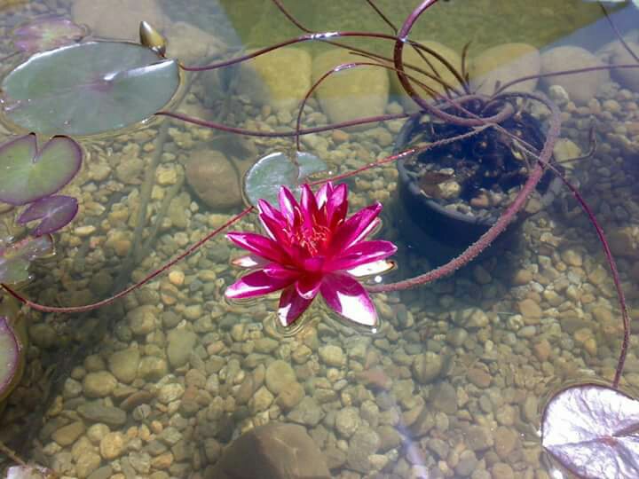 много хубаво езеро,добре гледано. поздравления.лилиите се развиват с годините,аз имам листа с диаметар 30 см.твоите на каква дьлбочина са и с какъв субстрат?