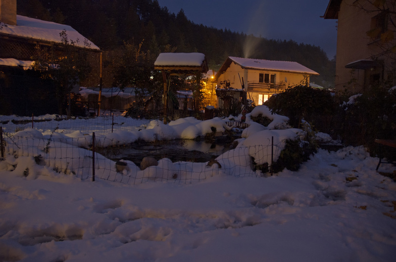 Всяка година като го зазимявам, оставям в единия край на езерото да работи компресора за въздух, т.к. при мен е доста студено и се образува около 20 и повече сантиметра лед. Тази зима обаче имах проблем с помпата и не можах да го отстраня на време и езерото замръзна. Рибите най- вероятно са се задушили, поне аз така си го обяснявам, защото всичките най- големи, 12 на брой бяха замръзнали в най- плитката част на езерото. Другото ми предположение е че не са успели да се зазимят, да преминат към дълбокото и са замръзнали. Но и в двата варианта аз съм виновен, че под ходих много несериозно към подготовката за зимата и подцених ситуацията.