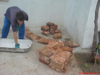 тва е на село изработката е изцяло моя и на брачеда  :-D  Макар и никога да не сме правили подобно нещо ето на , откраднахме си тухли и камъни си понабрахме и ето го . Ако някой припомни формулата за лице на окръжност и литрите ще кажа . До 2 седмици мисля да пускам риби вътре , все пак кулата от камъни не е готова пък и помпичка от стара пералня си търся .
