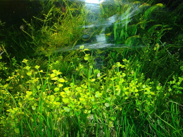 Извинявам се, че не съм  описал и обитателите. Няколко скариди - не повече от 4 в най добрият случай, 1 микрорасборагалакси изкривена   и недъгава и  достатъчно  планорбиси на които редуцирам бройката като с "жертвите" подхранвам Хелените. Като  подхранки и торене не добавям нищо освен изброеното по-горе.