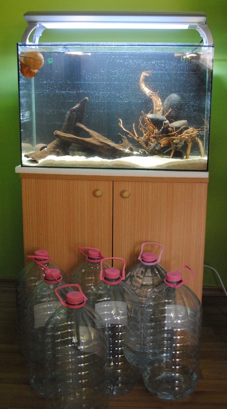 2 седмици дали ще са достатчни да се завърти цикълът. Полвината вода е от 3 годишен аквариум.Мисля когато стане на седмица да направя 50% смяна и да сложа пак стара вода.