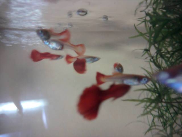 Някои от мъжките на червената линия имат много добри опашки!  Добре са отворени.  *THUMBS UP*   А рибите от последните снимки албиноси на жълтото тукседо ли са?