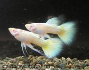 Съществуват няколко предположения какво сам по себе си представлява албинизмът. Някои казват, че това е мутация; други – че това е болест; трети смятат, че това е "изпратена" от природата чиста форма за провеждане на селекционна работа. Авторът на настоящия обзор не си поставя за цел да установява какво всъщност представляват албиносите; главното е, че гупите, притежаващи тази форма на фонов цвят, са красиви и могат да имат различни варианти на покриваща окраска, които според възможностите ни са представени по-долу.