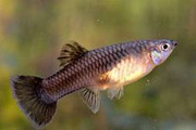 Снимка 5. Самка гупи със син фонов цвят. Възможно е непълно доминиране на сивия фон над синия