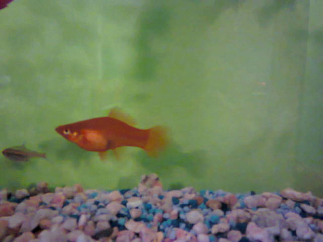 Здравейте преди 1 седмица си взех женска гупа но когато се прибрах и я пуснах в аквариума забелязах на светло че вместо да има черно отзад то е бледо розаво почти жълто. Гупата е с много голям корем все едно ще ражда всеки момент. Та какво да правя с тази гупа