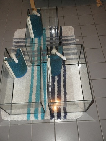 Та с родилката от първия вид съм направил малко корекции.  Изразал съм дъното внимателно за да не се начупи решетъчната част. Скарата си ляга пак на място и родилката се слага в родилен аквариум  където малките след като паднат през решетката  няма как да се върнат обратно при майката. Тоест си плуват в родилния аквариум необезпокоявани.