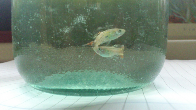 Аквариума ми е малък 20 литров и в него освен Гупи има и една двойка розово Данио. В аквариума има още една мъжка Гупа (баща на всички малки Гупи), чийто плавник също е разкъсан: