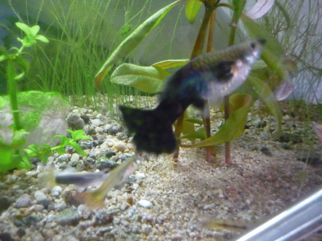 На снимката се вижда зад голямата гупа другата ми гупа, която спрямо гиганта изглежда като бебе а си е нормална на размер, даже наскоро роди и ми остана една малка гупичка, която ще стане на един месец.