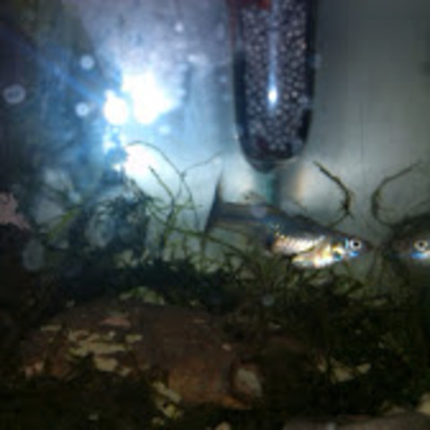 След последния ми пост и нервността й при отделянето си я прехвърлих в общия. Мислех тази вечер да я прехвърля в малкия аквариум за да я чакам да роди. На сутринта обаче рибите ми направи впечатления че са доста не нервни, по скоро игриви. Стрелна ми се нещо пред погледа и - малка рибка. Веднага я преместих в малкия аквариум, огледах се за малки, извадих ги от общия. Сега съм я покрила с кърпа, изключила съм осветлението. Температурата на водата
