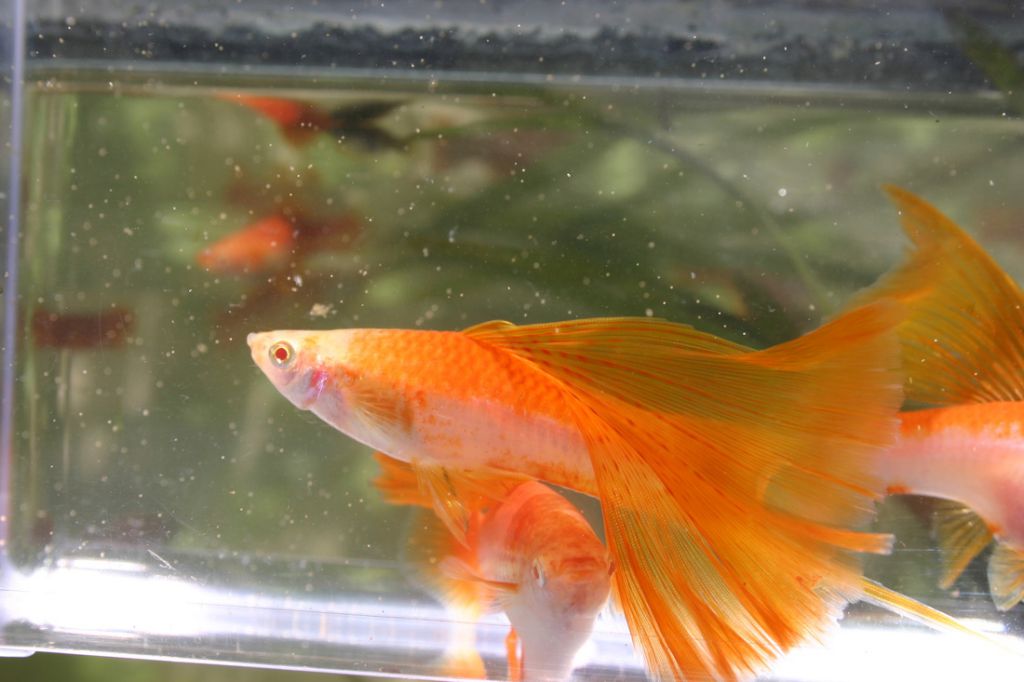 Swordtail Lyretail Red Eyed Red  най ми хареса, а аз в магазина тук видях един чисто оранжев като портокал и с оранжеви очи- мъжки, но докато се варна да го взема- бяха го купили. Много красив беше и той :)  http://animal-world.com/newsfeed/wp-content/uploads/2010/02/goldifhs048.jpg   ей този линк би му била женската версия