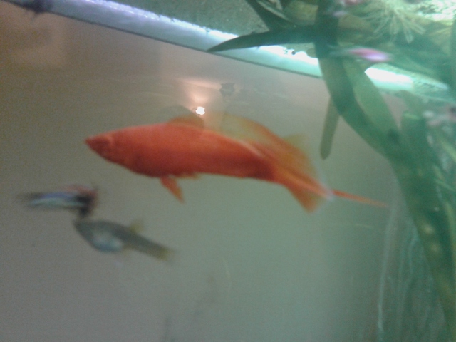 Swordtail Comet Red - терминатора  :-D До сега не съм имал такова чудо - над 12см е и гази всичко мъжко, а с дамите е много нежен *bg*