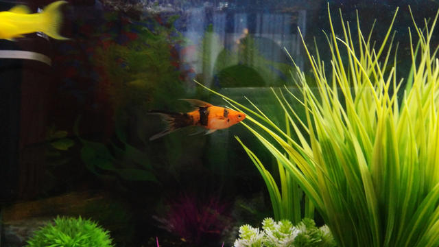 Плавниците са черни, което означава че това е някоя форма на вагтайл - зелен или голд.