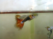 Здравейте! Края на лятото си купих две женски H/B Purple за да поддържам линията.Какво се оказа обаче - явно при транспортирането са били смесени с други гупи(защото в зоомагазина имаше 3 линии и бяха разделени) и когато родиха...изненада ,получи се един миш-маш.Та ето това са моите мелезчета,които мислех да раздам,но доста се привързах и си ги запазих.Сега съм ги отделил в едно аквариумче 15-16 литра