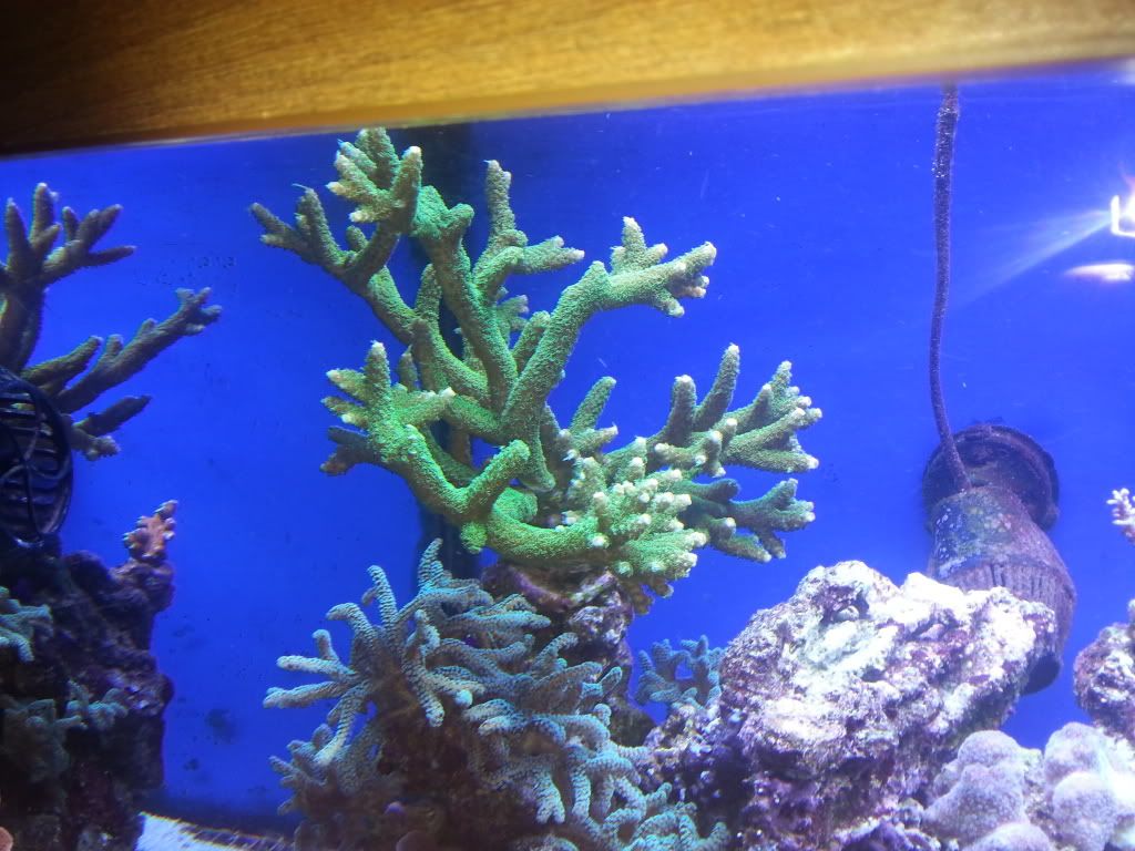 Явно си на правилния път,видим растеж на акропората,които май доста бавно растат по принцип.Много хубави цветове имат.На снимките има някакви нюанси в червено,от какво са?Какво ти е осветлението и колко вата/площ?