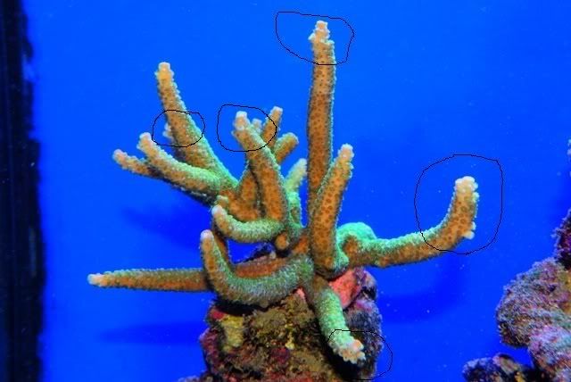 Първата акропора, за съжаление само Кирил знае как изглеждаше, понеже ми е от него. Но вече се забелязват новите връхчета