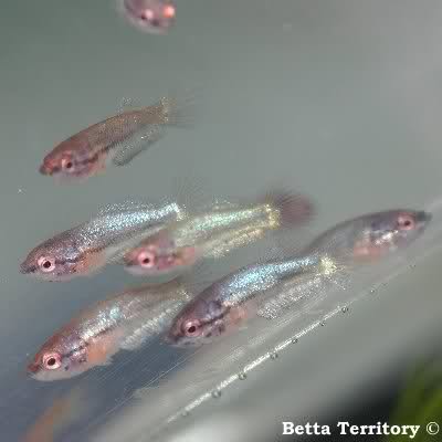 На възраст от 3-4 седмици, освен на артемия вече може да започнете храненето с жив Tubifex. Също така по-големи смени на водата се правят в момента след храненето за около 10-20% на два дни. Около 4-6 седмици първите мъжкари ще започнат да се показват (с по-светли цветове като жълто може и да отнеме малко повече време).