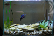 За да не оварям друга тема ще питам тук. Та значи имам в един 10 литров аквариум мъжка и женска бета. Така като чета виждам че мъжката може да убие женската. Моите вече 4 дена са заедно и са си добре не сам ги разделял нито със стъкли нито със мрежа.   Не е развъден аквариум имам грунт, растения, аератор с гъба, има си и лампа. Ще имам ли проблем със съжителството на двете риби? И дали може да се размножът? Водния стълб е около 18 см.(знам че трябва да е 13-15 и без грунт) температурата на водата е 25 градуса. И ми е интересно може ли да стане нещо или не? И ако трябжа да махам женската ако има вероятност да я убие. Мога да я пусна в общия, но мажкия ме е стах че ще го наръфат здраво. И затова сам им направил отделен дом с гринт растения и т.н. .