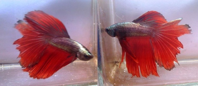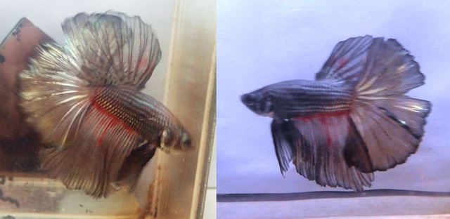 Явно рибите не са мое потомство.От всичките риби само рибата която колегата не хареса е чист халфмуун голд копер,с лош разпад на червено по плавниците.Другите са делта халфмууни.Последната риба дракон не е лоша.Колегата от Тайланд има има проблем с плавниците на рибите.Много са накъсани,или имат бактериално загниване.
