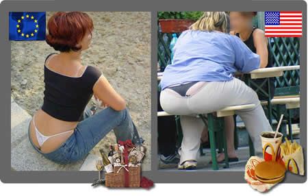 Впрочем при тях наднорменото тегло си е масов проблем. Снимката в дясно с триумфа на материята е по-често срещана по техните улици отколкото моделчето от снимката в ляво.