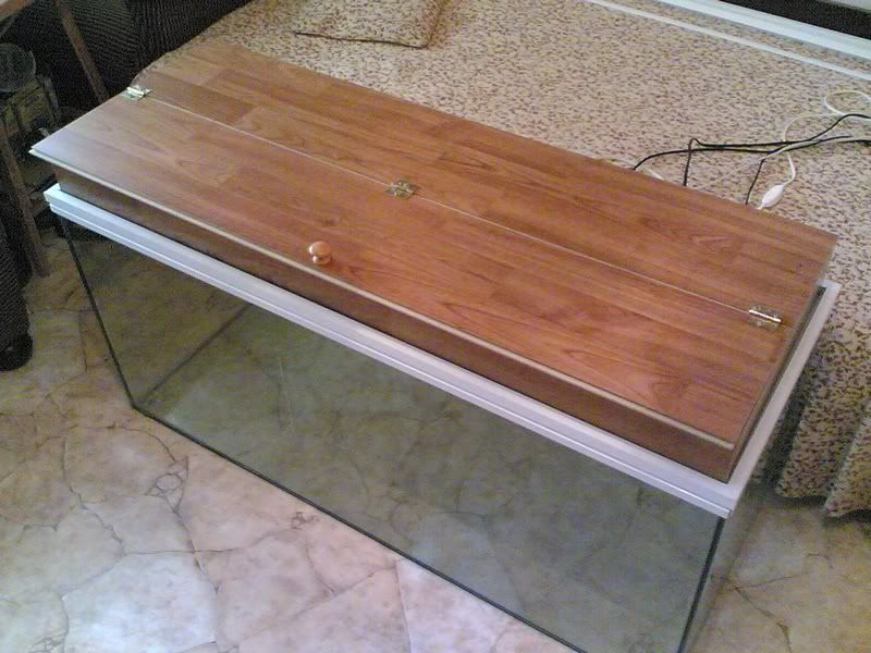 Капака го правих от ламинат по схемата на NikolaV,получи се много добре,а за основа на капака облепих по горната част алуминиеви профили за дограма.Влизат точно в стъклото.Така едно че покриха горния ръб,а и се полочи стъпка за капака: